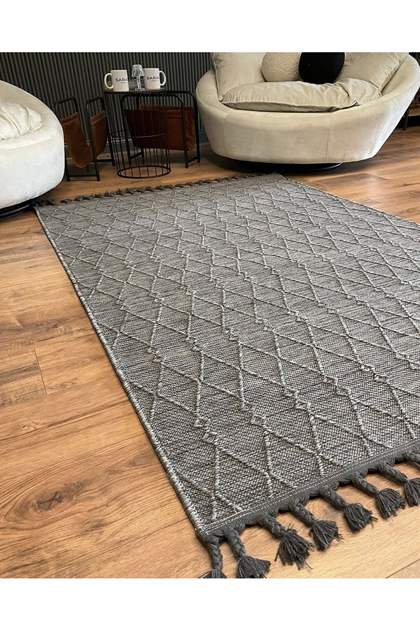 Bukle Gri Yumuşak Dokulu Halı Kilim Salon Mutfak Koridor Kesme Yolluk Dokuma Makine Halısı 11883