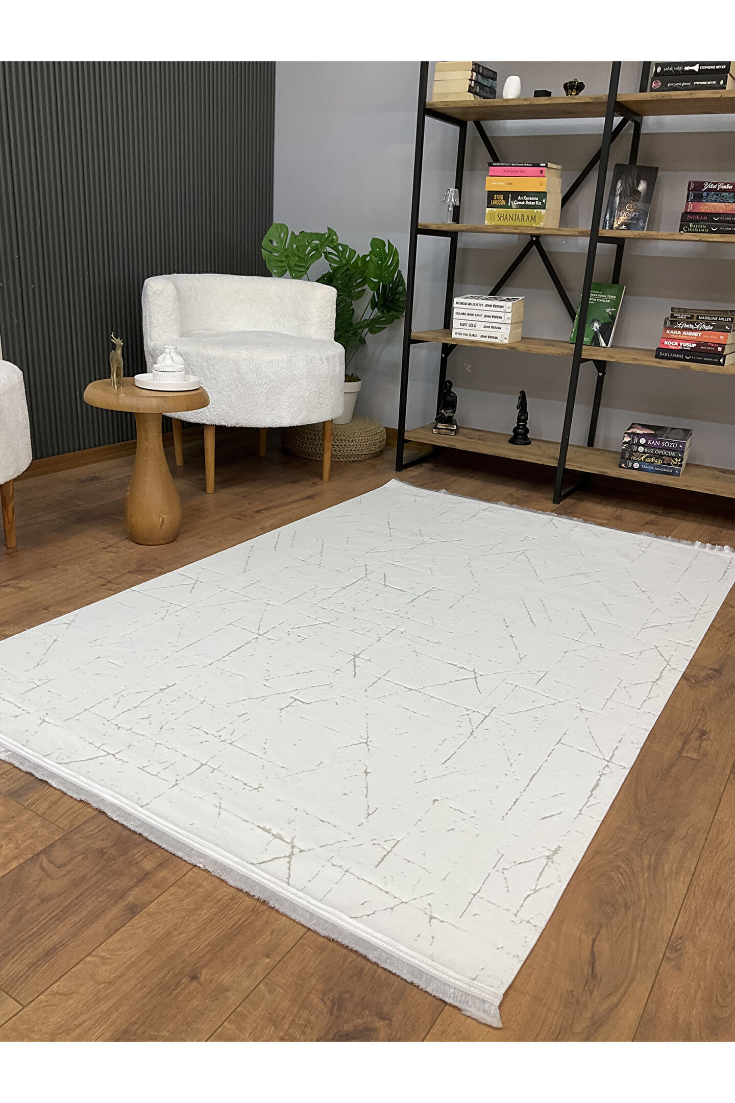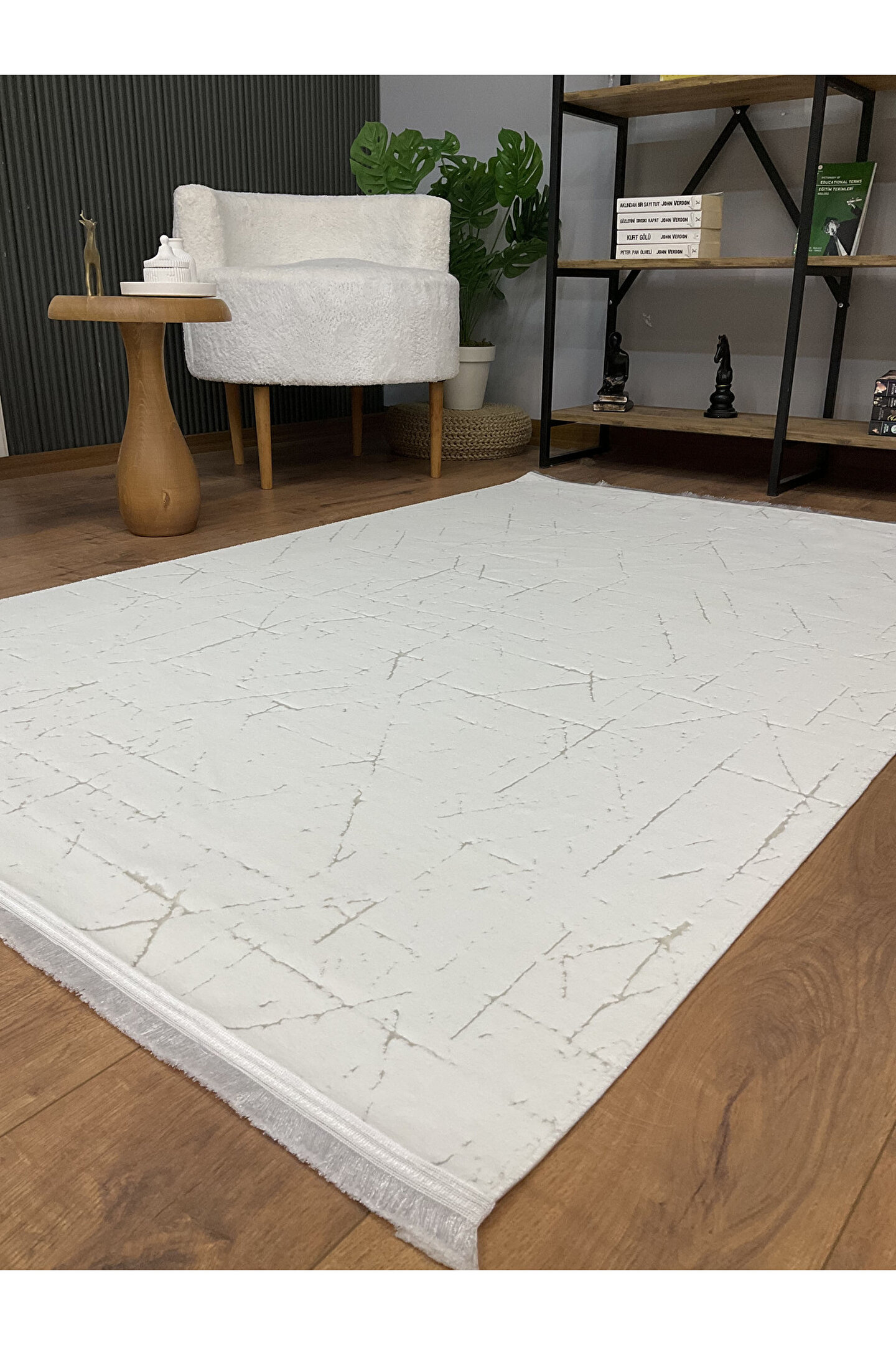 SARAZ HALI Verona Serisi Beyaz Pamuk Halı Yıkanabilir Kaymaz Taban Antibakteriyel Kilim Ve Yolluk Kesme Halı