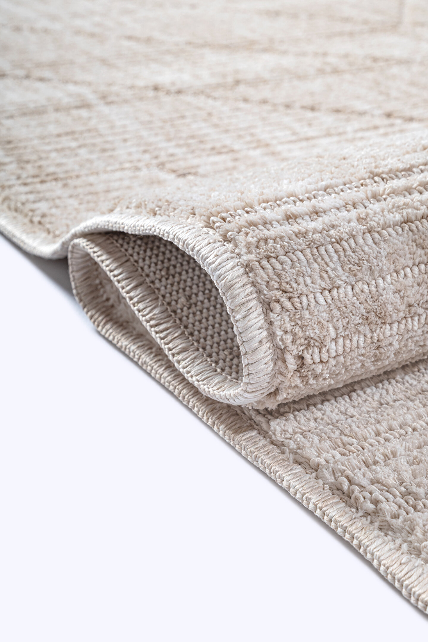 Saraz Yalın Serisi 5579 Bej Microfiber Bukle Dokuma Halı, sade, modern ve konforlu tarzı bir araya getirir.; Microfiber ipliklerle üretilen yumuşacık bukle dokusu sayesinde antre, hol, koridor ve yatak odalarında sıcak bir atmosfer oluşturur.; Kaymaz tabanlı yapısı güvenli kullanım sunarken, leke tutmaz ve toz tutmaz özelliğiyle kolay temizlenir.; Kesme halı veya yolluk olarak üretilebilen bu model, modern ev dekorasyonuna zarif bir dokunuş katar.; Yalın serisi halı grubu, minimalist tasarımı ve microfiber bukle dokuma yüzeyiyle uzun ömürlü kullanım sağlar.; Krem rengiyle her mobilya ve zemin tonuna uyum sağlar.; Yumuşacık yüzeyiyle konfor, modern duruşuyla estetik bir görünüm kazandırır.; Ürün Özellikleri:Yalın Serisi – Model No: 5771Microfiber özel iplikten üretilmiştirBukle dokuma yüzeyLeke tutmaz, toz tutmazKaymaz tabanlıKesme halı / yolluk üretimi mümkündürKalınlık: Yaklaşık 8-10 mmRenk: KremTürkiye’de üretilmiştirKullanım Alanları:Antre, hol, koridor, yatak odası, salon ve ofis gibi tüm yaşam alanlarında rahatlıkla kullanılabilir.; Temizlik ve Bakım:Makinede yıkanmaz.; Nemli bez ve halı şampuanı ile silinerek temizlenmelidir.; Profesyonel halı yıkama servislerinde yıkanması tavsiye edilir.; Doğrudan güneş ışığı veya yüksek ısıda kurutmayınız.