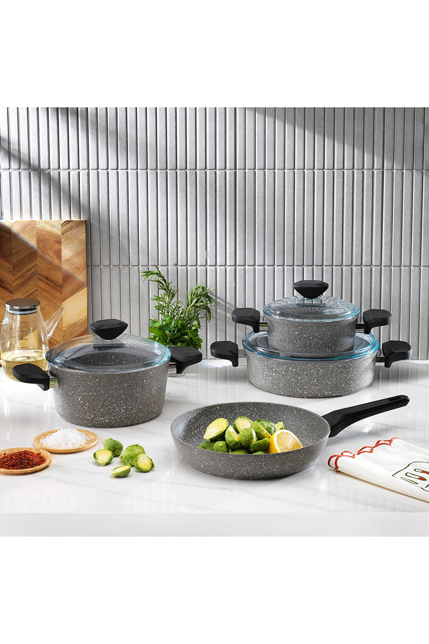 Schafer Etna Yanmaz Yapışmaz Tencere Seti 7 Parça-Gri