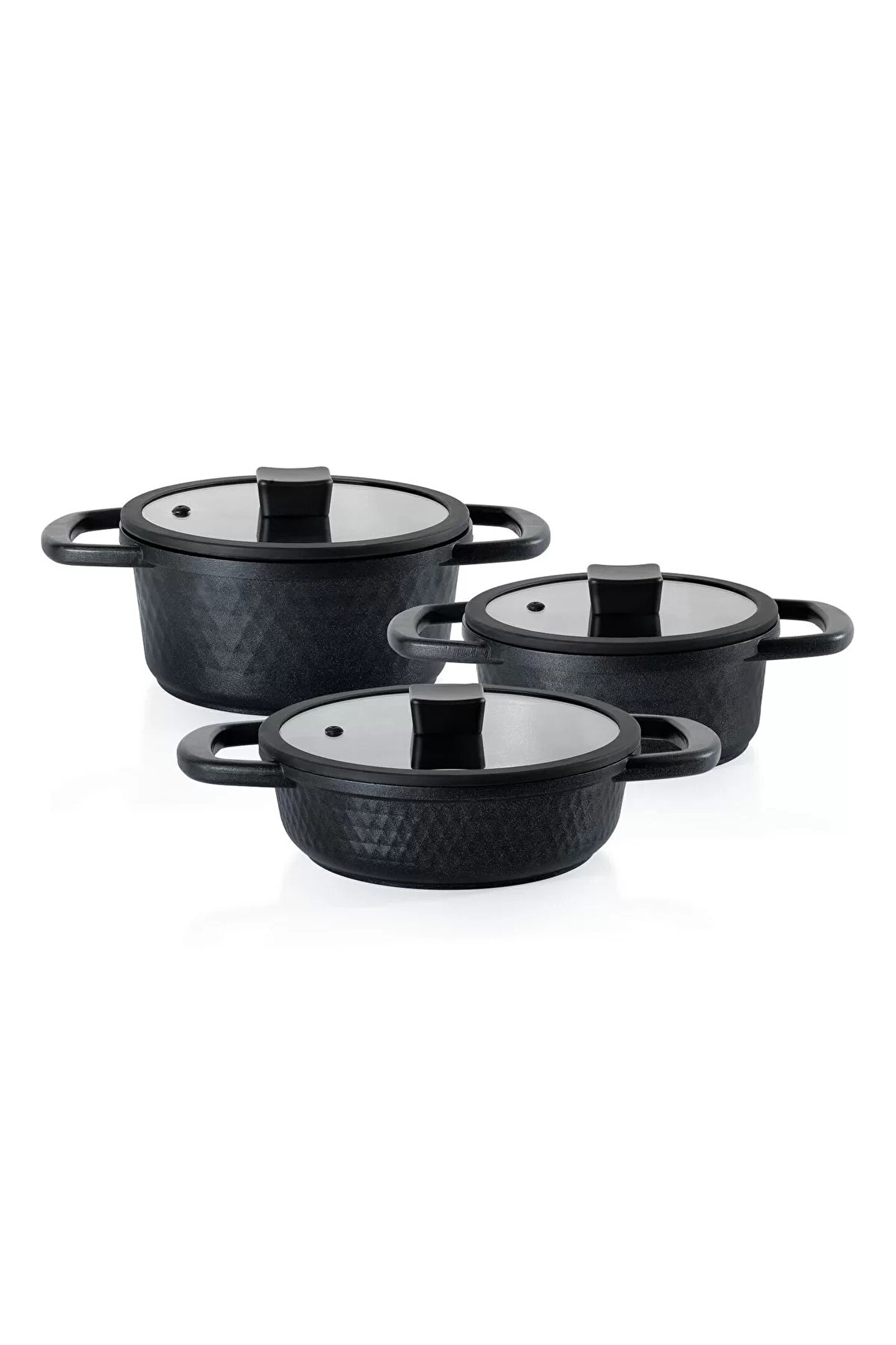 Hektor 3 Lü Döküm Tencere Seti 6 Parça-siyah