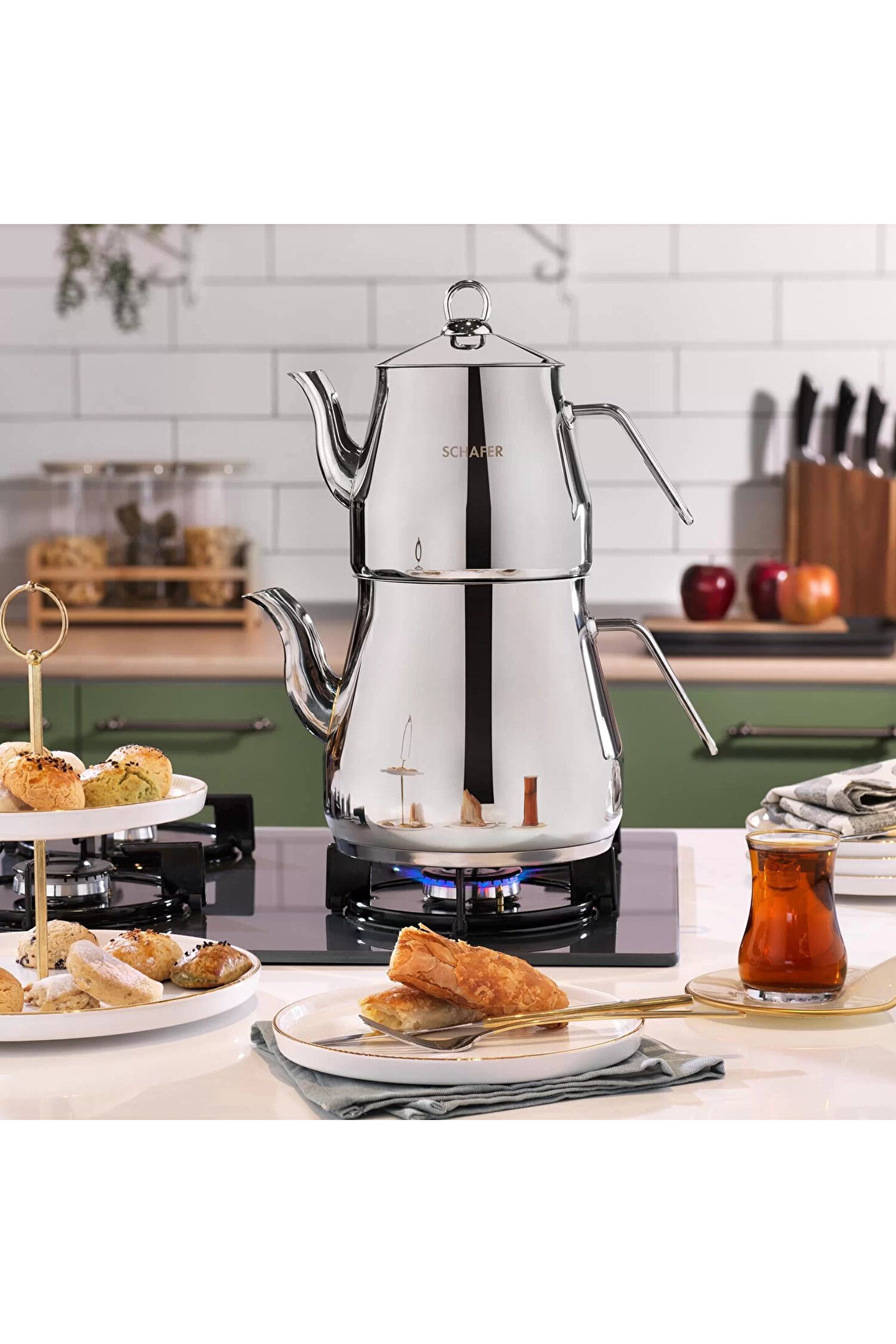 Schafer Prochef Dev Çaydanlık Takımı 4 Parça Gümüş