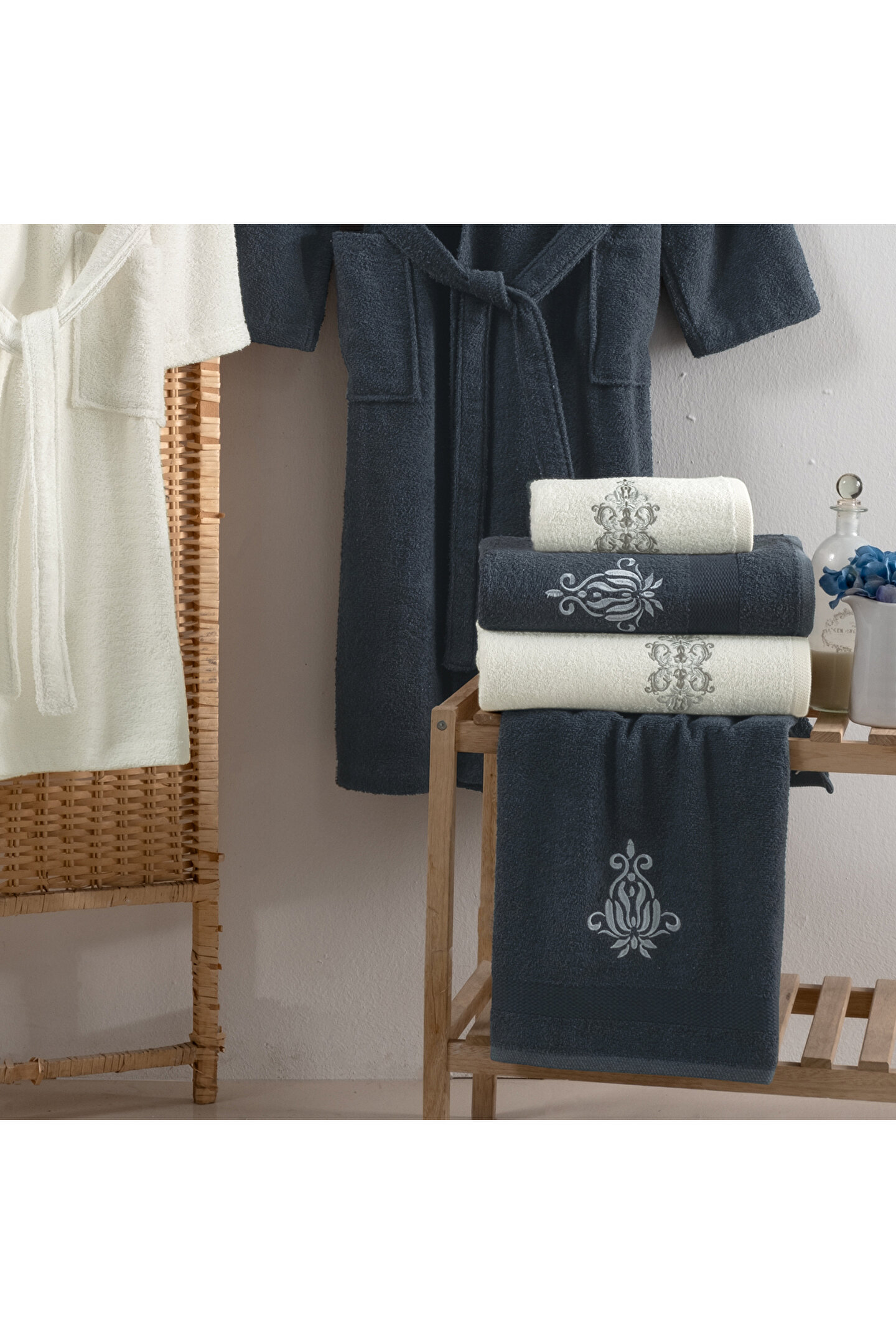 6 parçadan oluşan set, banyo rutininizi tamamlamak için ihtiyacınız olan her şeyi tek pakette sunar; Sade ve şık bir görünüm için düz desen tasarımı, banyonuzun dekorasyonuna modern bir dokunuş katar; Yüksek kaliteli 100% pamuk materyal bileşeni sayesinde yumuşak dokunuşu ve emiciliği ile cildinize nazikçe sarılır; Saç havlusu tipi, saçlarınızı nazikçe kurulamak için idealdir ve banyo sonrası konforunuzu artırır; Erkek model L/XL Kadın model S/M ebatlarındadır.