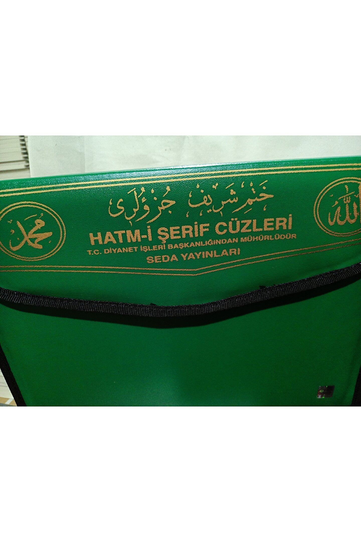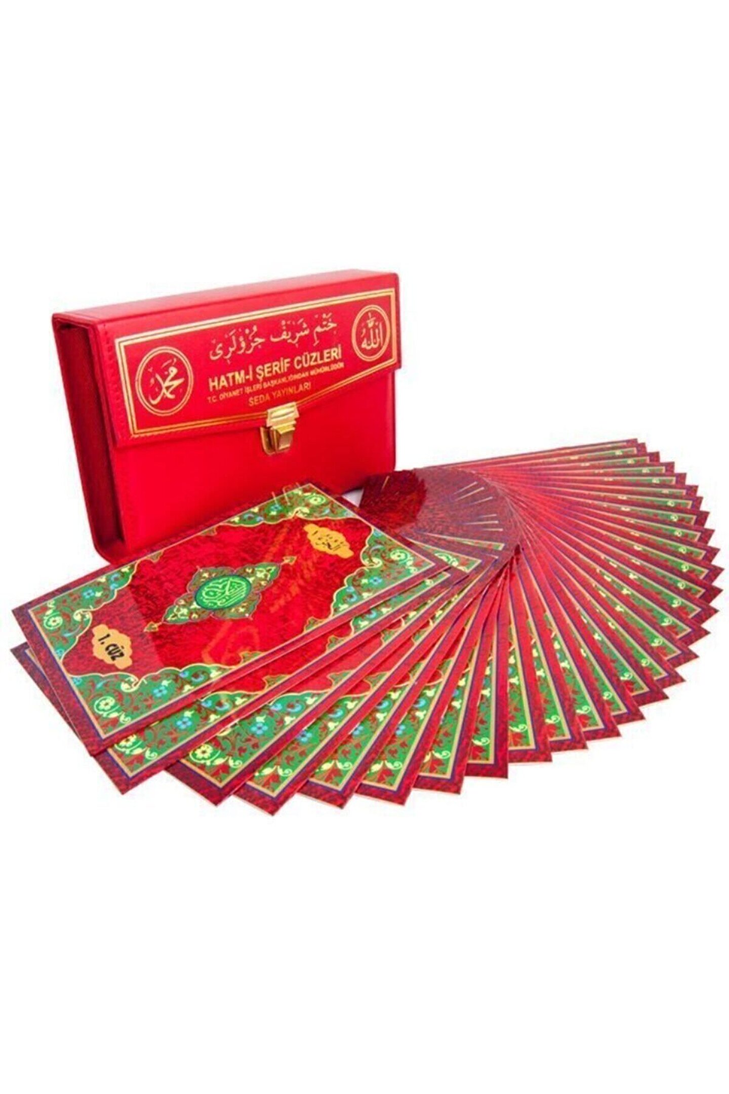25x35 cm.; ebat şamua (sarı) kağıt renkli iç baskı bilgisayar hatlı lüks çantası içinde 30 CÜZ KUR'AN-I KERİM HATİM CÜZLERİ 25x35 cm.; ebatlarında, cami boy, bir yere asılabilir çantalı, kolay okunan bilgisayar hatlı otuz cüz.; Kuran-ı Kerim İslam’ın kutsal kitabıdır.; Arapça bir sözcük olan "kuran”, okumak, ezbere okumak, bir araya getirmek anlamına gelir.; Arapça olan ve 114 surede toplanmış 6200’ün üstünde ayetten oluşan Kuran, Hz.; Muhammed’e peygamberliğin verildiği 610’dan 632’deki ölümüne kadar parça parça indirilmiştir.; Cüz Cüz bir İslam terimidir.; Bu terimin anlamı: Kur'an'ı Kerim'de ki her 20 sayfaya verilen addır.; Kuran'ı Kerim'de yaklaşık 30 cüz vardır.; Her cüzün başında gül resmi vardır.; Hatim Hatm veya hatim, Kur'an'ın yüzünden veya ezberden baştan sona okunmasıdır.; Okuyana hatim veya hafız denir.; Anlamını bilmese bile İslam dünyasında Kuran'ı küçük yaşta ezberlemek bir peygamber tavsiyesidir.; Ramazan ayında hatim indirmek, camide imama uyarak hatmi takip etmek gelenek haline gelmiştir.; Hafızların hatimden sonra töreni yapılır, hatim duası okunur.