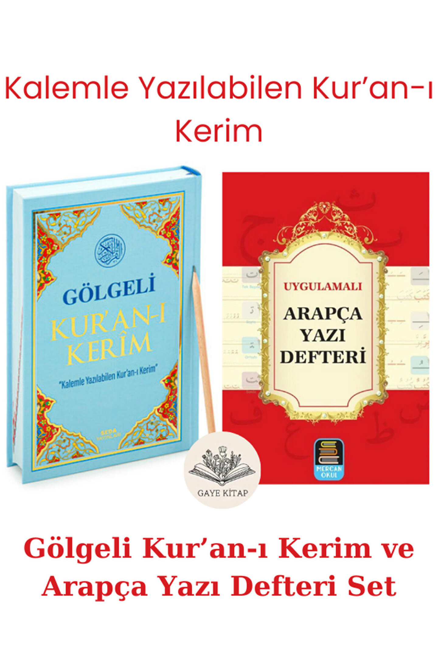 Gölgeli Orta Boy Elle Yazılabilen Kuran-ı Kerim ( Mavi ) ve Uygulamalı Arapça Yazı Defteri Set