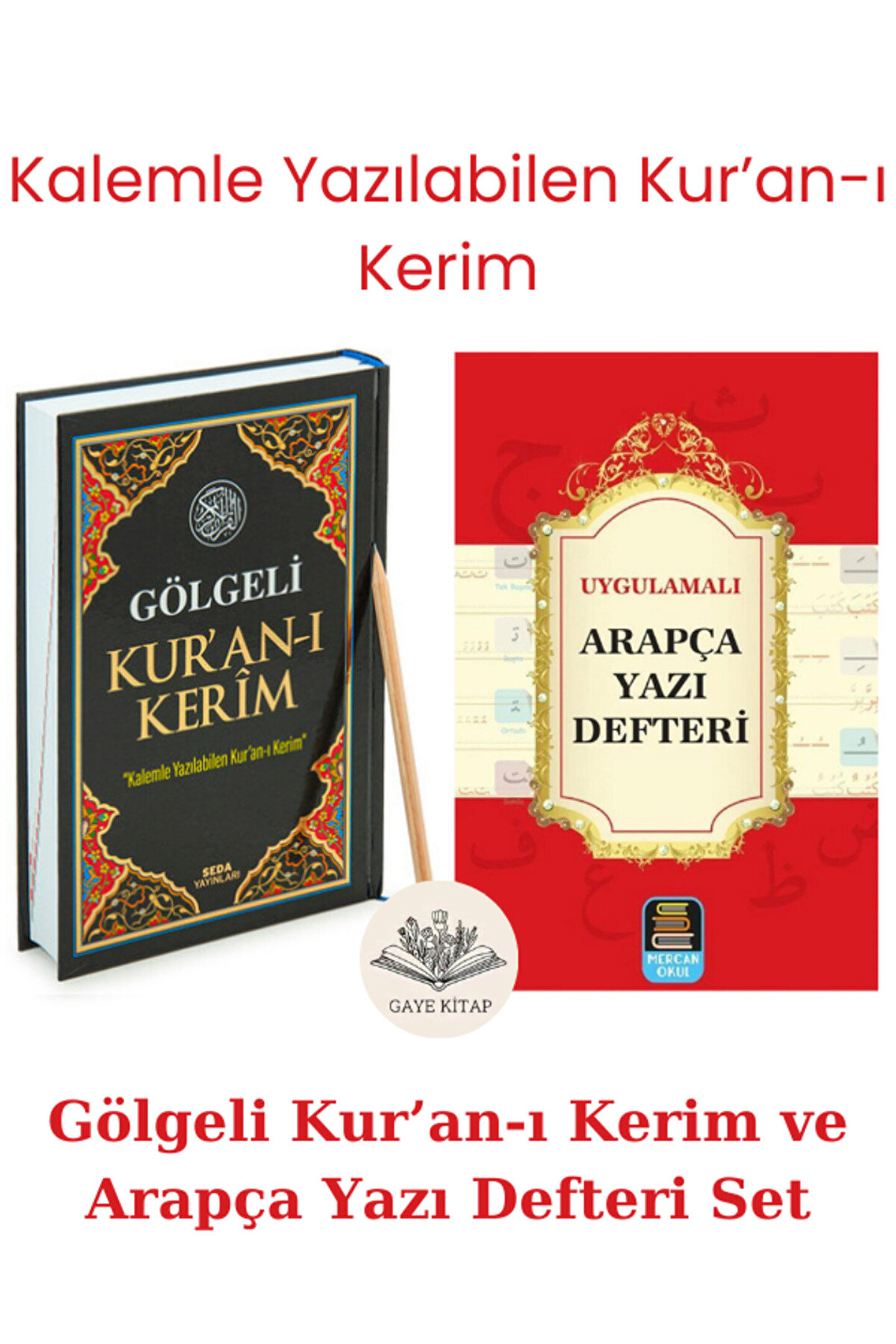 Gölgeli Orta Boy Elle Yazılabilen Kuran-ı Kerim Siyah ve Uygulamalı Arapça Yazı Defteri Set
