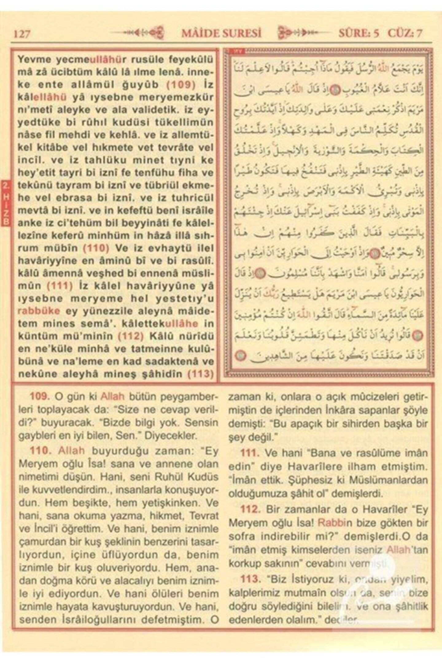 Kur'an-ı Kerim Arapça Türkçe Okunuşu ve Mealli Üçlü (Cami Boy, Kod: 002) Bilgisayar Hatlı, Çok Kolay Okunuşlu, Renkli Seda Yayınları Basım Yılı: 2020; Baskı: 4; Sayfa Sayısı: 624; Kağıt Türü: Şamuha Kağıt; Ebat: 24 x 33; Dil: Türkçe; Cilt Durumu: Karton Kapak; ISBN: 9944929141; Renk: Renkli; Çevirmen: Elmalılı Hamdi Yazır; Editör: Kadir Güneş; Sadeleştiren: Mehmet Şirin Doğan; Kuran-ı Kerimin Arapça metnini manasını ve Türkçe okunuşunu aynı anda bu eserde bulabilirsiniz. Eserin Arapça metni bilgisayar hattıyla yazılmış olup Çok Kolay Okunur Meal Kısmı Elmalılı Muhammed Hamdi Yazır Mealinden Sadeleştirlmiş Türkçe okunuşu Günümüz Türkçesinden Mealin Konu Fihristi Ayet Sırasına göre Surelerin Alfabetik Fihristi Mushaf Tertibine göre sureler Fihristi Nuzul Sırasına Göre Sureler Fihristi Hafız Osman Sıralaması 4 ayrı Fihrist oluşturulmuş ve eserin son sayfalarına Ali Haydar elifba eklenmiştir.