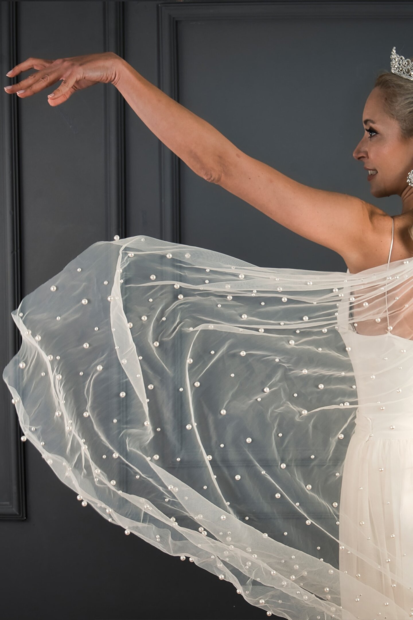 Zarif sim detaylarıyla süslenmiş, kırık beyaz renkli gelin duvağı, özel gününüzde ışıltınızı ön plana çıkarır; İnci işlemeleri ile zenginleştirilmiş bu gelin duvağı, şıklığınızı tamamlayacak zarif bir dokunuş sunar; Simli modeli sayesinde, gelinliğinizin üzerine ekstra bir ışıltı katarken, göz alıcı bir görünüm sağlar; Kırık beyaz rengiyle klasik ve zamansız bir tercih yaparak, her türlü gelinlik modeliyle uyum içinde olmanızı sağlar;