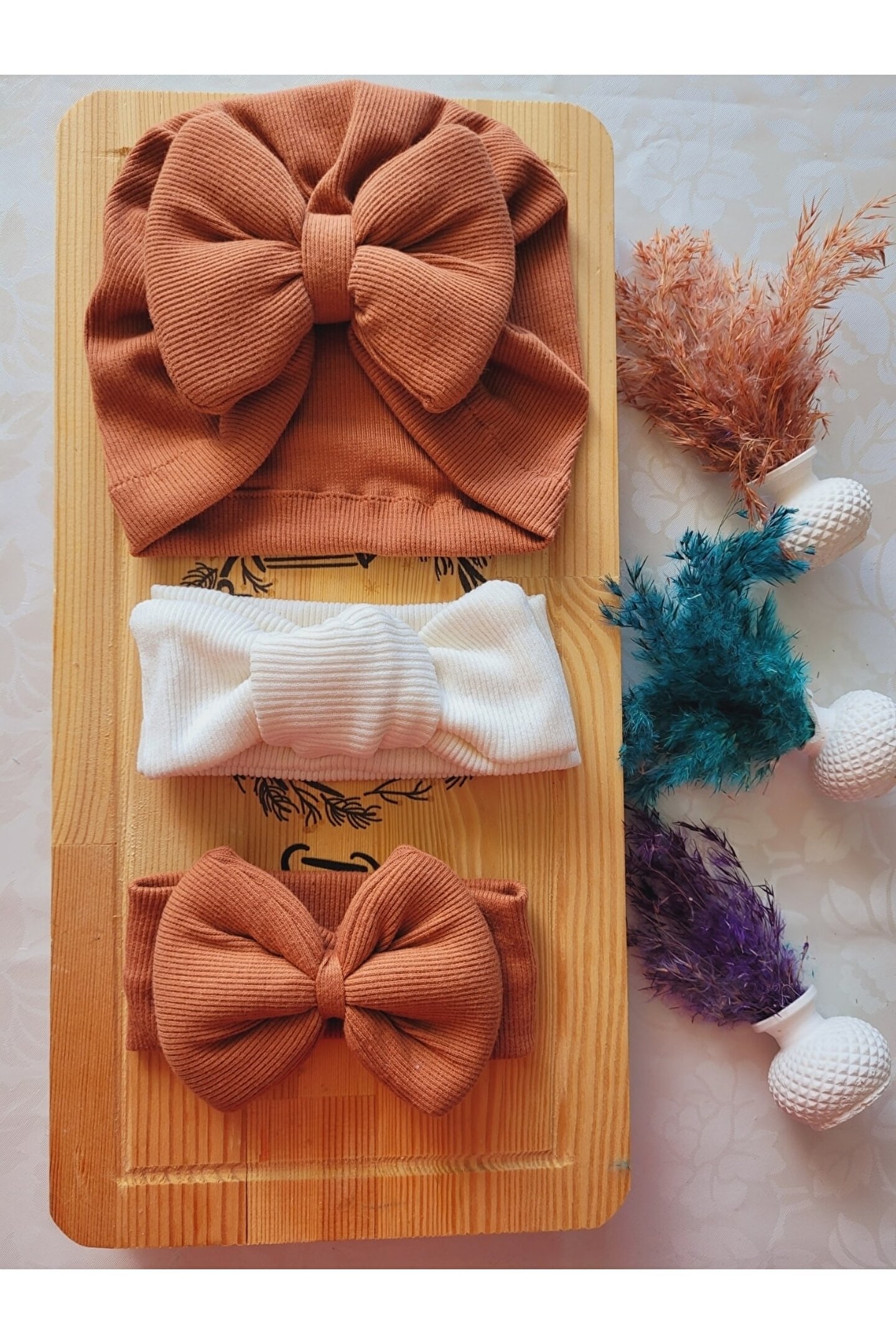 Kız Bebek & Çocuk Fiyonklu Bone & Bandana Set