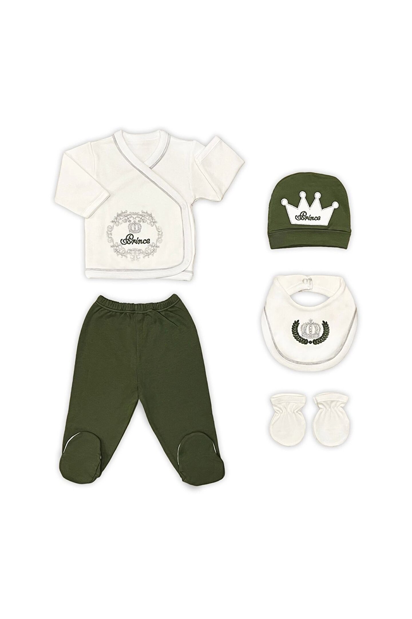 Prens Lüks 5 Parça Hastane Çıkışı Zıbın Seti - Yeşil