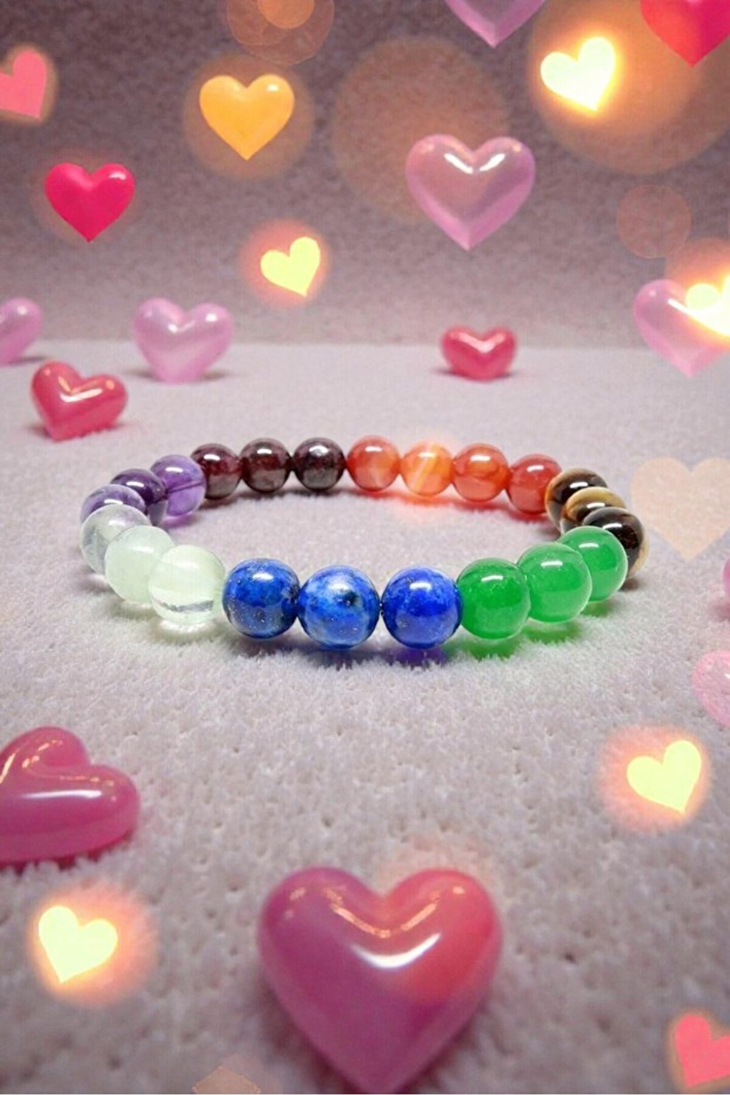 - Doğal taşlardan üretilmiş, her biri benzersiz bir enerjiye sahip yedi çakra bileklik.; - Yetişkinler için tasarlanmış, unisex bir aksesuar seçeneği sunar.; - Türkiye'de üretilmiş olup, yerel kaynaklı doğal taşların kullanıldığı bir el işçiliği ürünüdür.; - Diğer özellikleriyle dikkat çeken bu bileklik, hem şıklığı hem de doğallığı bir arada sunar.;