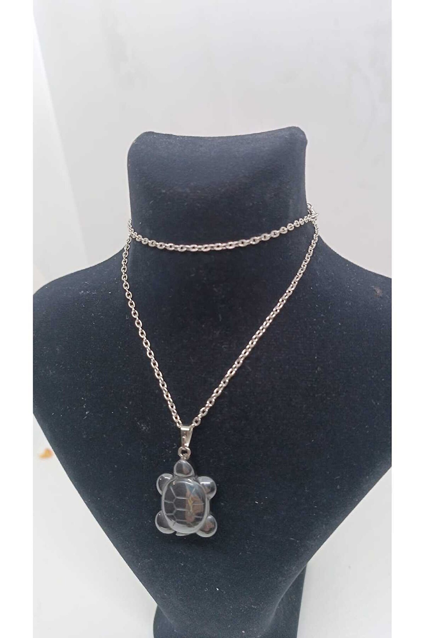 Dogal Taş Apatit Turkuaz Kristali Otantik Desenli Ahşap Boncuk Çelik Kolye