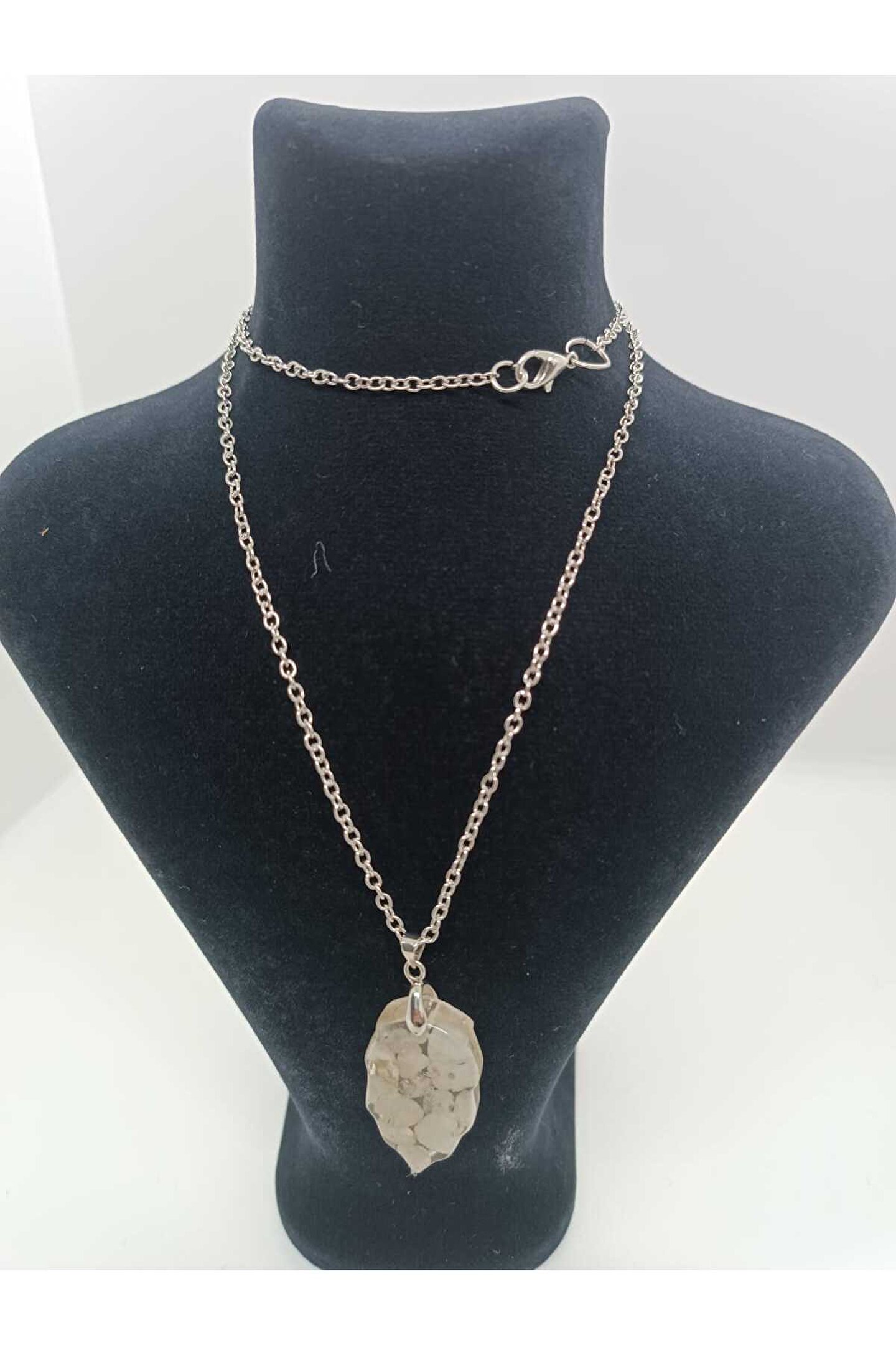 Dogal Taş Apatit Turkuaz Kristali Otantik Desenli Ahşap Boncuk Çelik Kolye