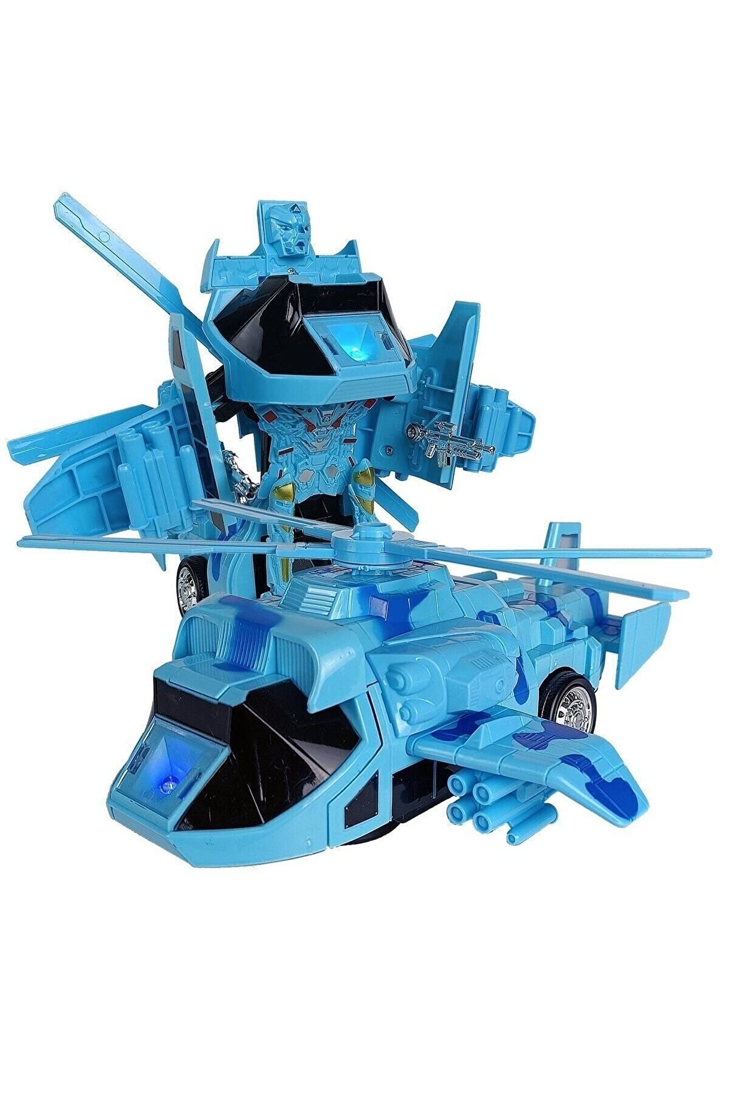 BN65 Dönüşen Oyuncak Robot Helikopter Araba Çarp ve Devam Et Sesli