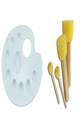1 adet resim paleti 4 lü sünger tampon fırça