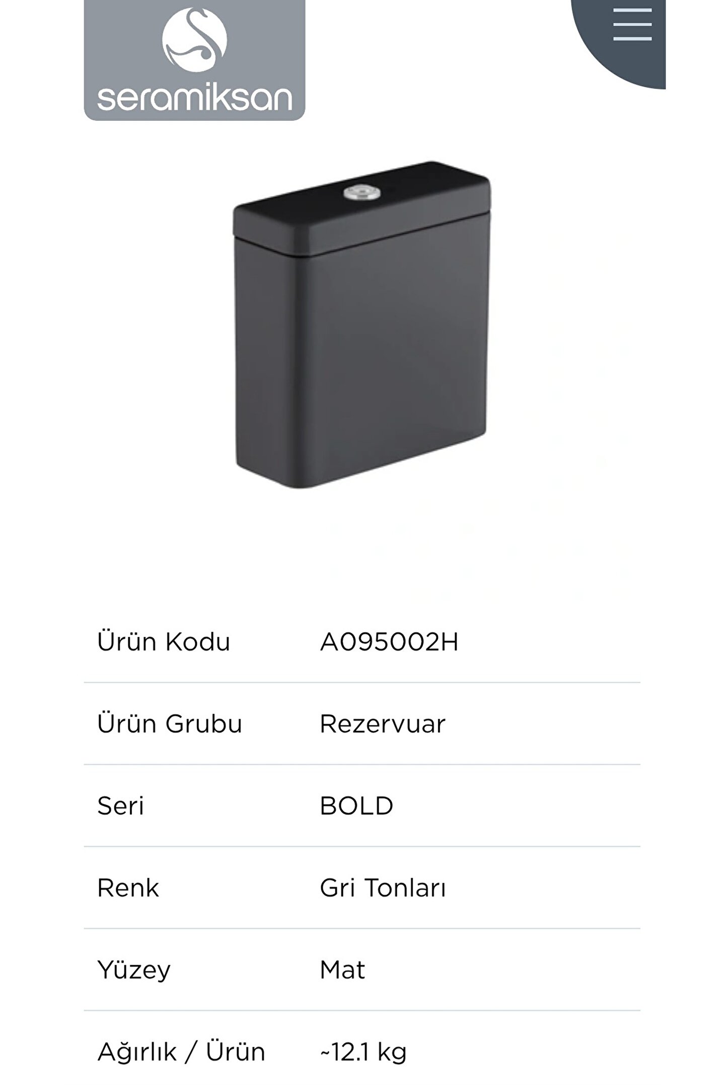 Seramiksan Bold Rim-out Mat Antrasit Dtd Klozet