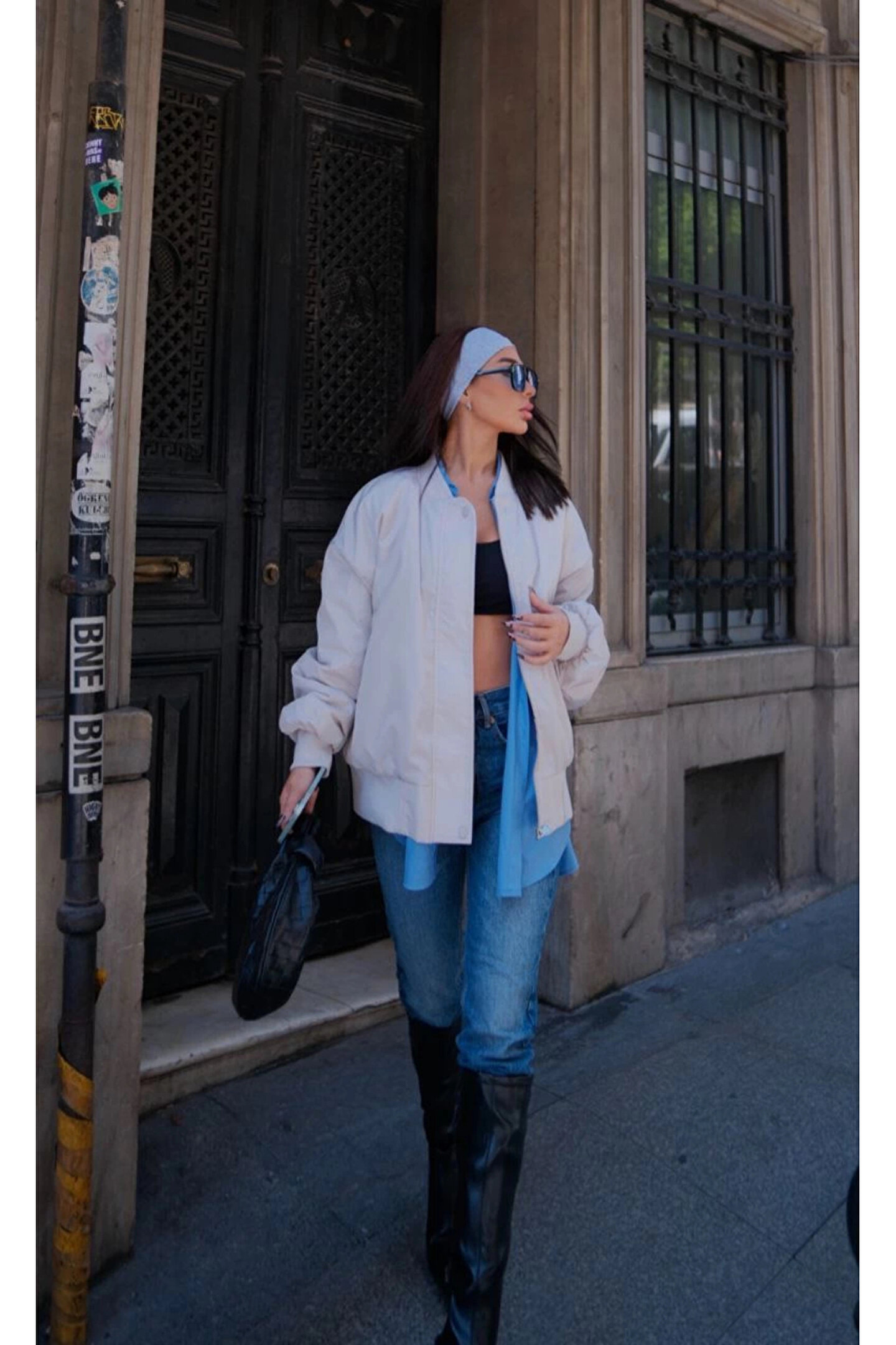 Serero Cepli Bomber Ceket Mont - Beyaz
