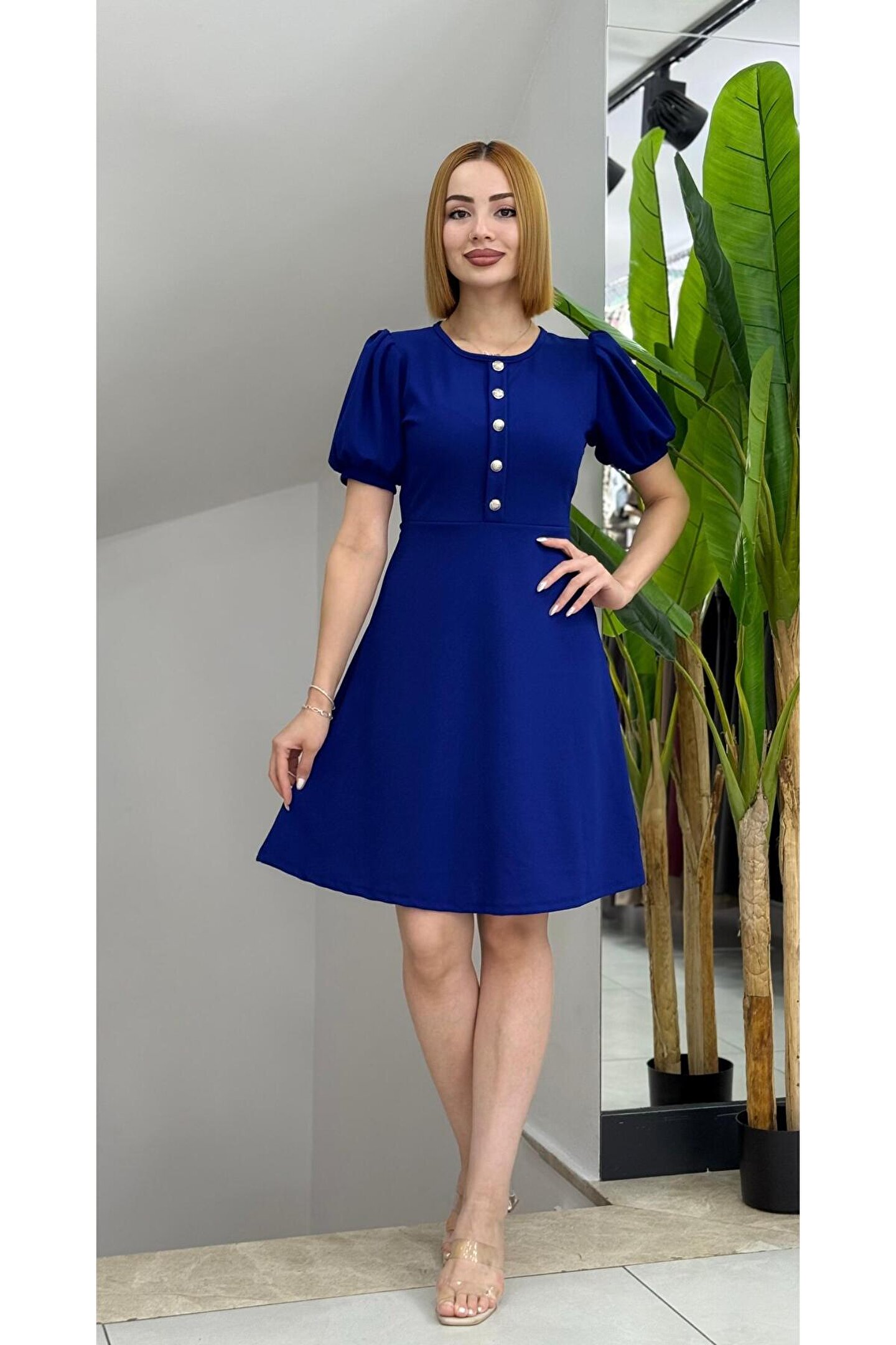 Kadın Kısa Kollu Bisiklet Yaka önden Düğmeli Ithal Krep Elbise