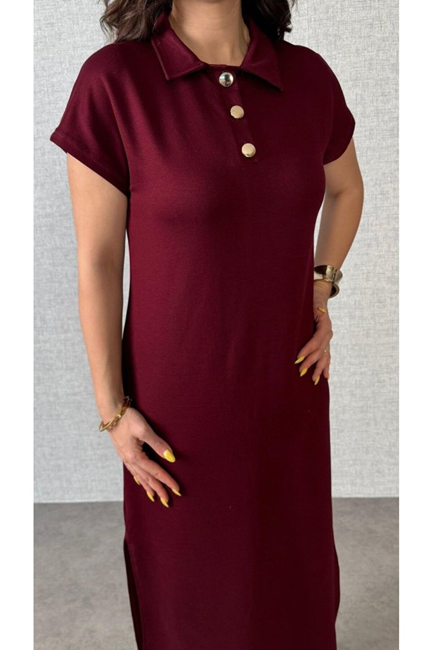 Kadın Kısa Kollu Yakalı Yandan Yırtmaçlı Viskon Iki Iplik Elbise