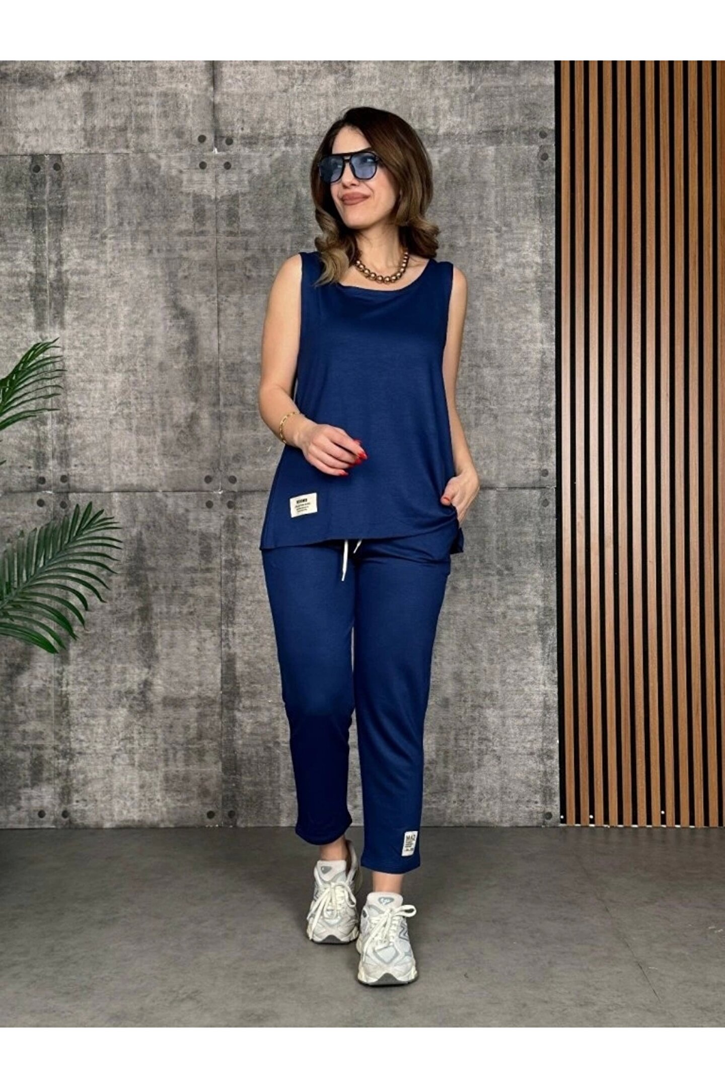 Kadın Askılı Yuvarlak Yaka Viskon Iki Iplik Bluz Ve Eşofman Altı Ikili Takım