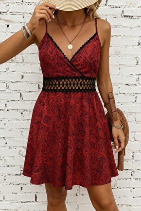 Serero Kadın Ip Askılı Kruvaze Yakalı Desenli Mini Süprem Mini Elbise