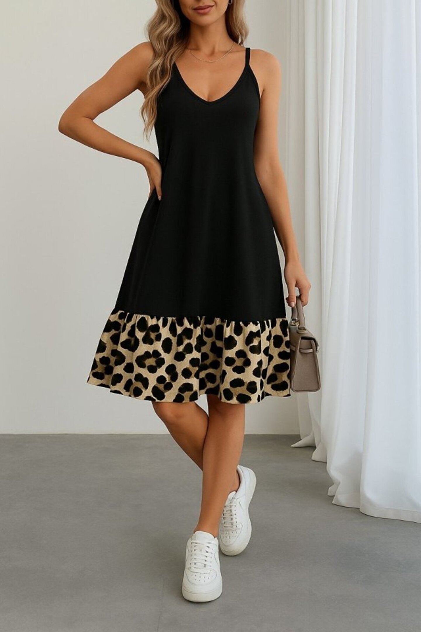popibutik Pile Etek İnce Askılı Korse Formlu Poplin Kumaş Siyah Midi Elbise