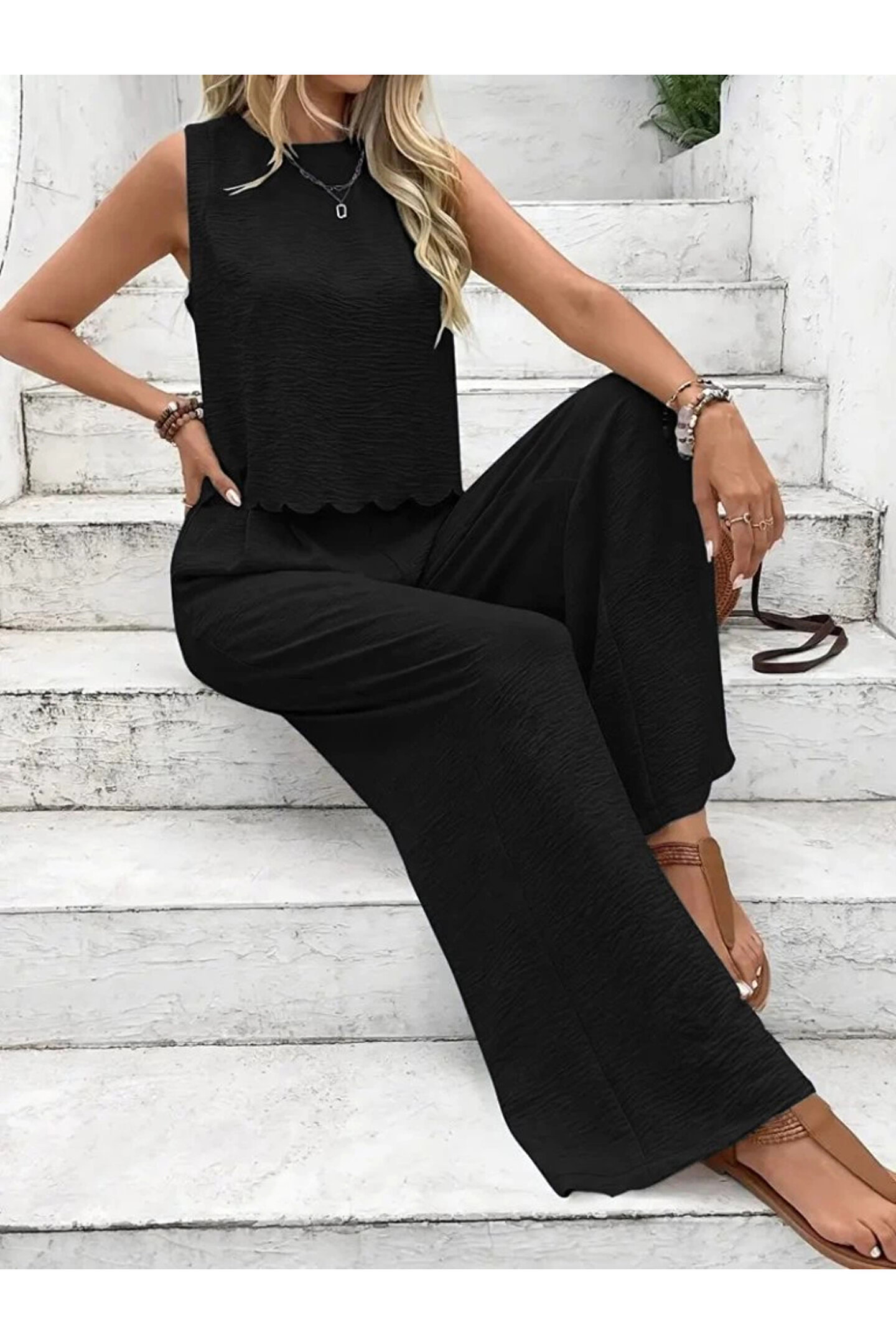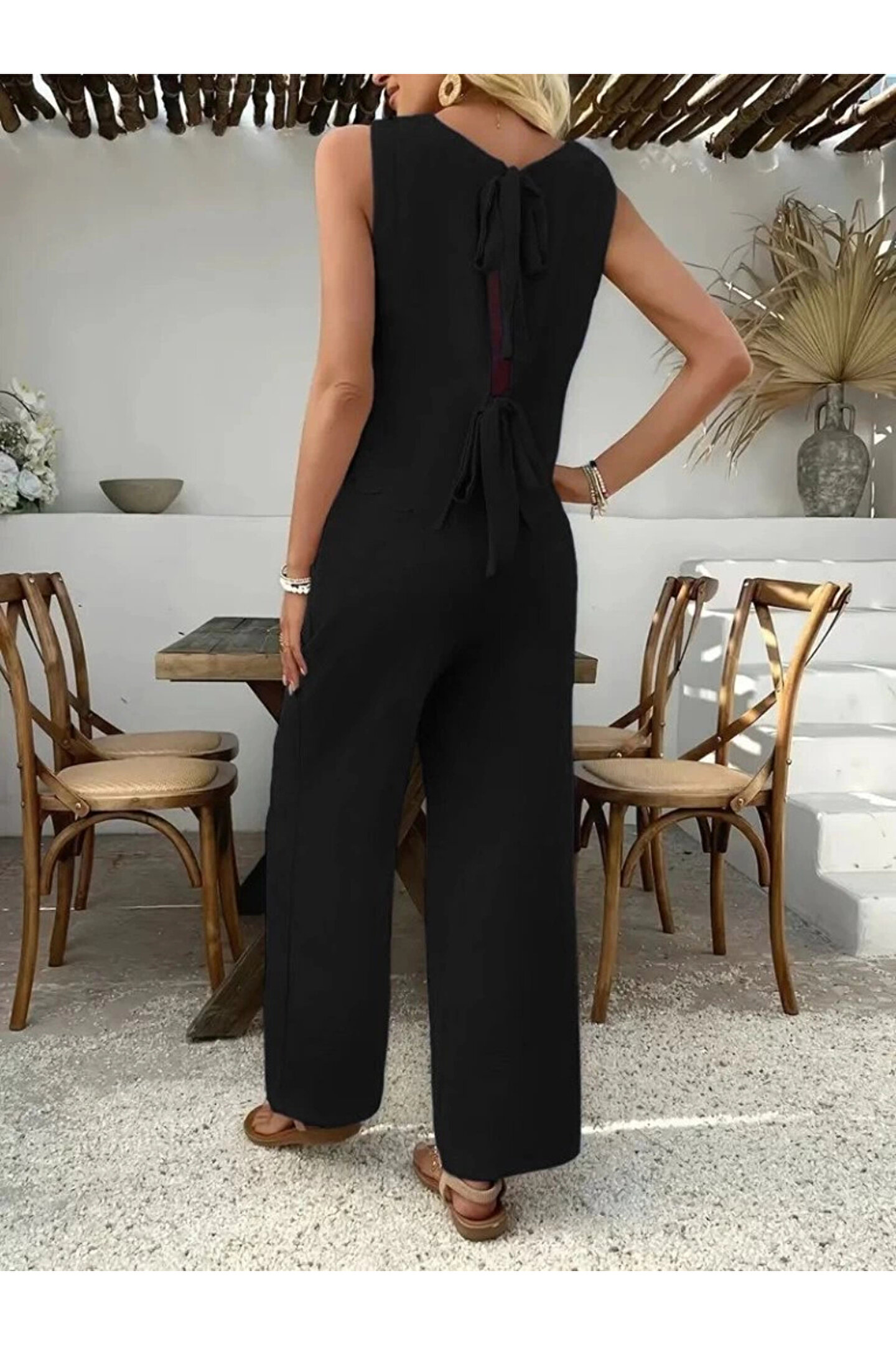 Kadın Sıfır Kollu Bisiklet Yaka Arkadan Bağlamalı Aer8bin Bluz Ve Pantolon Ikili Takım