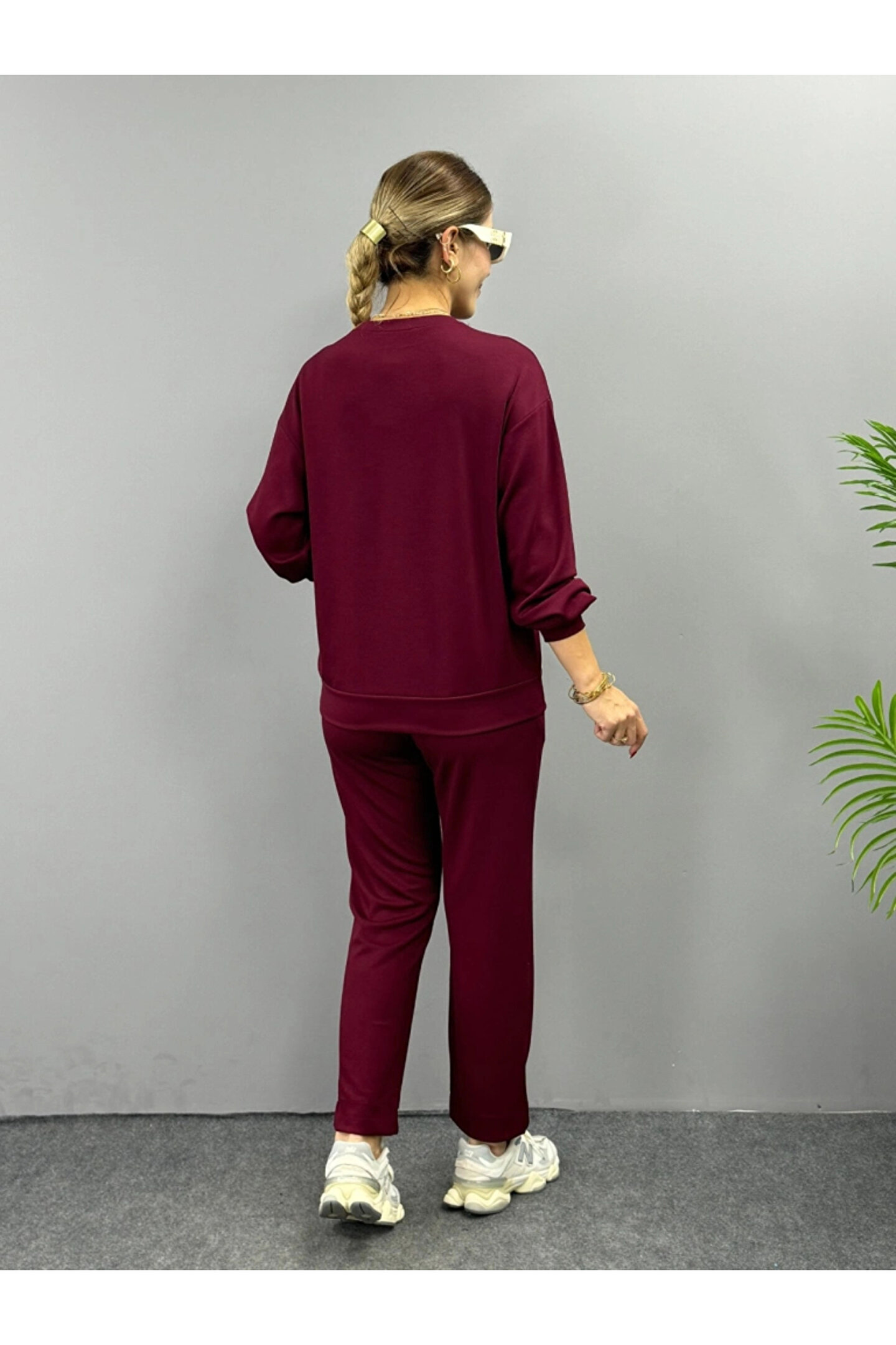 Kadın Uzun Kollu Bisiklet Yaka Viskon Iki Iplik Bluz Ve Pantolon Ikili Takım