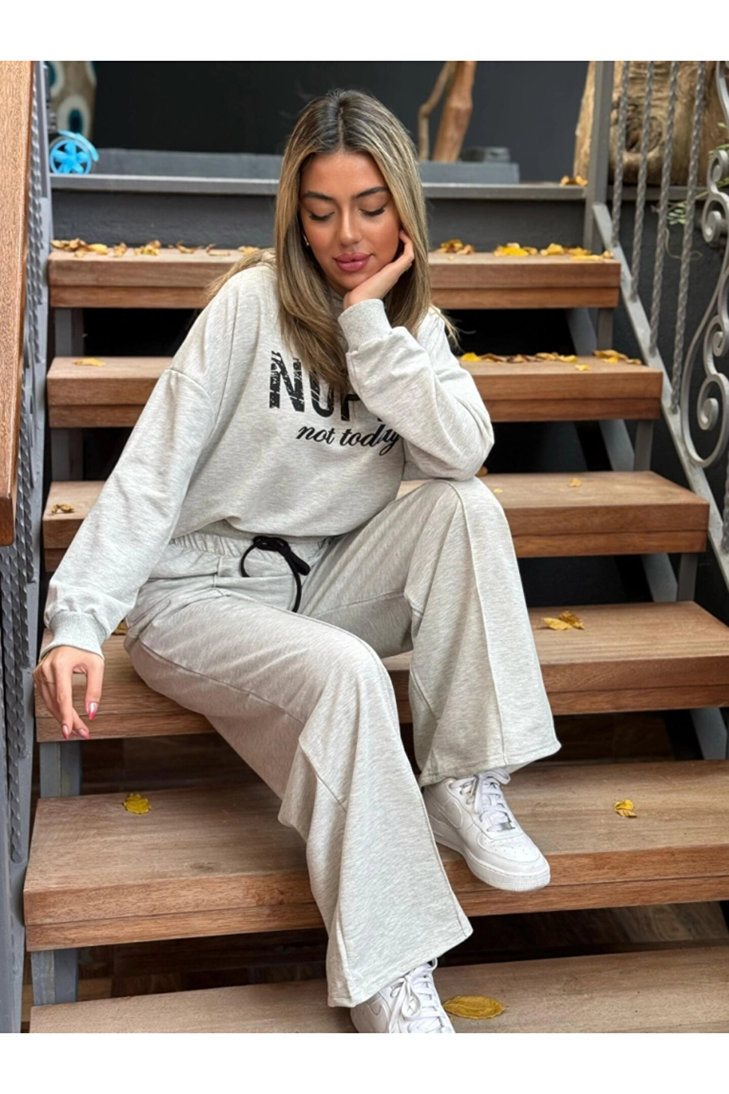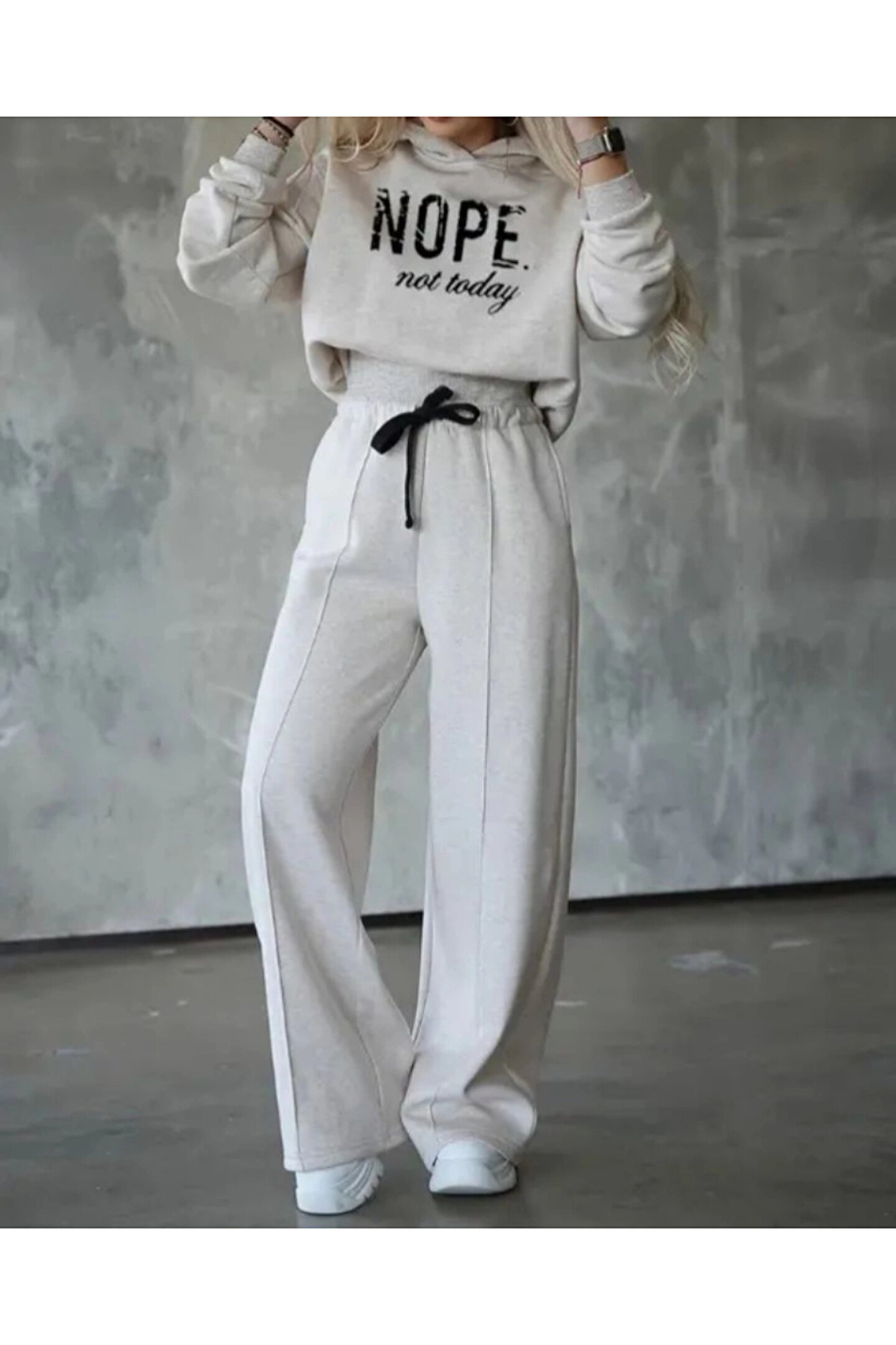 Kadın Uzun Kollu Nope Baskılı Beli Ribanalı Ikili Takım