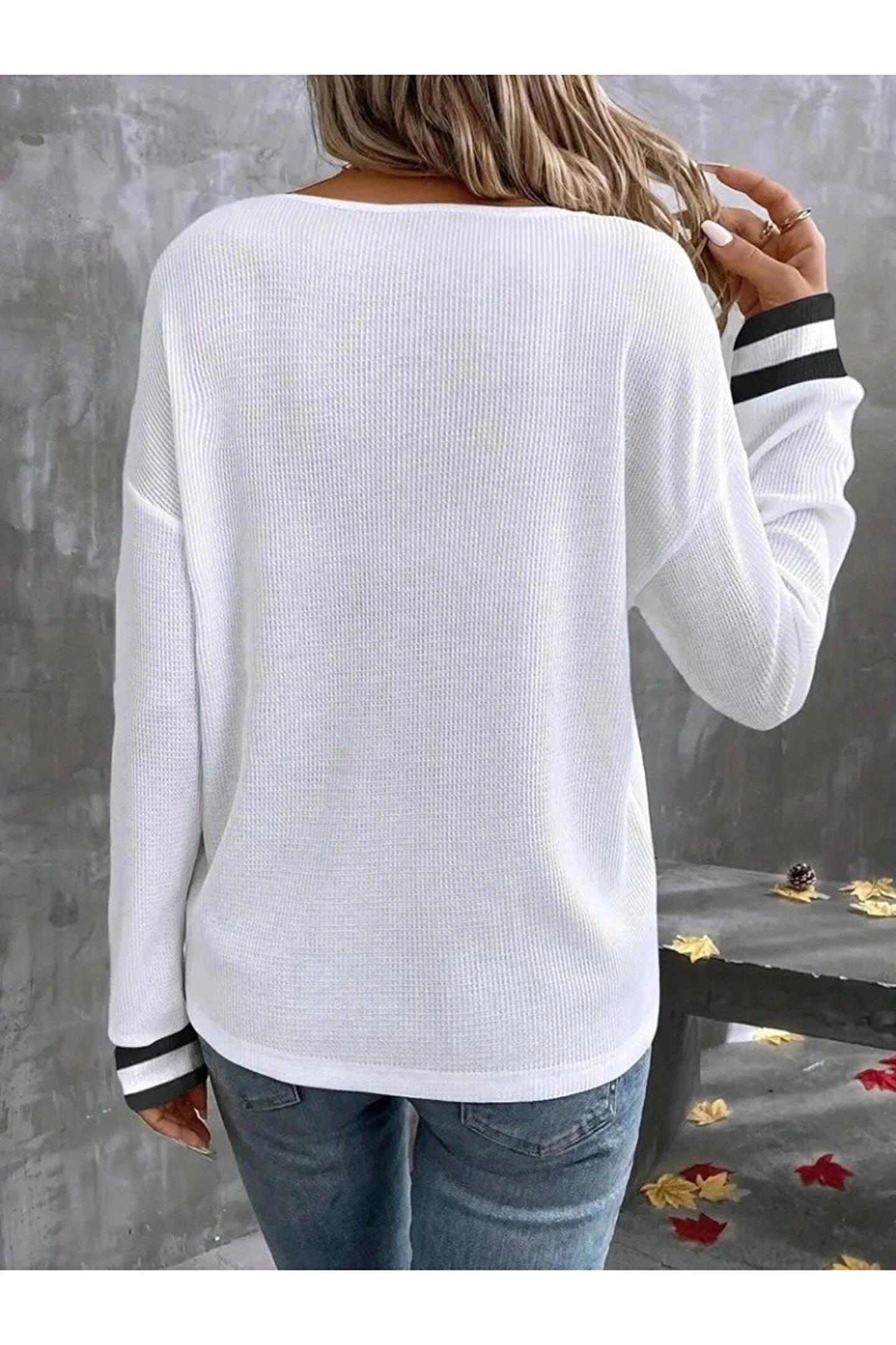 Kadın Uzun Kollu V Yakalı Waffle Bluz