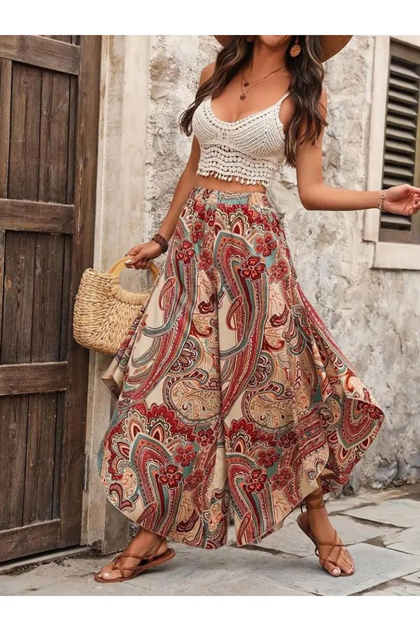 Serero Kadın Yüksek Bel Beli Lastikli Desenli Geniş Paçalı Süprem Pantolon