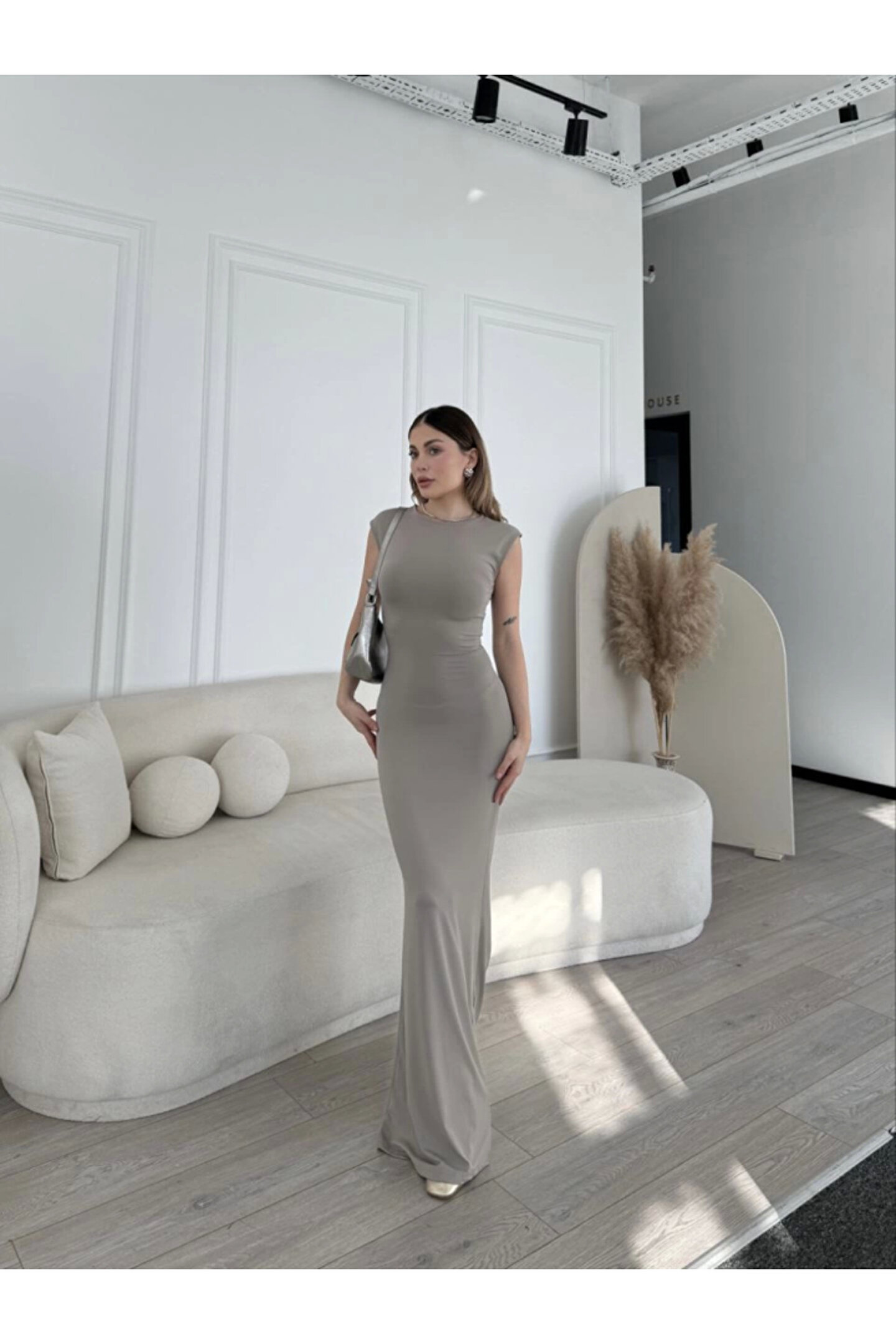 Serero Kolsuz Uzun Likralı Elbise - Gri