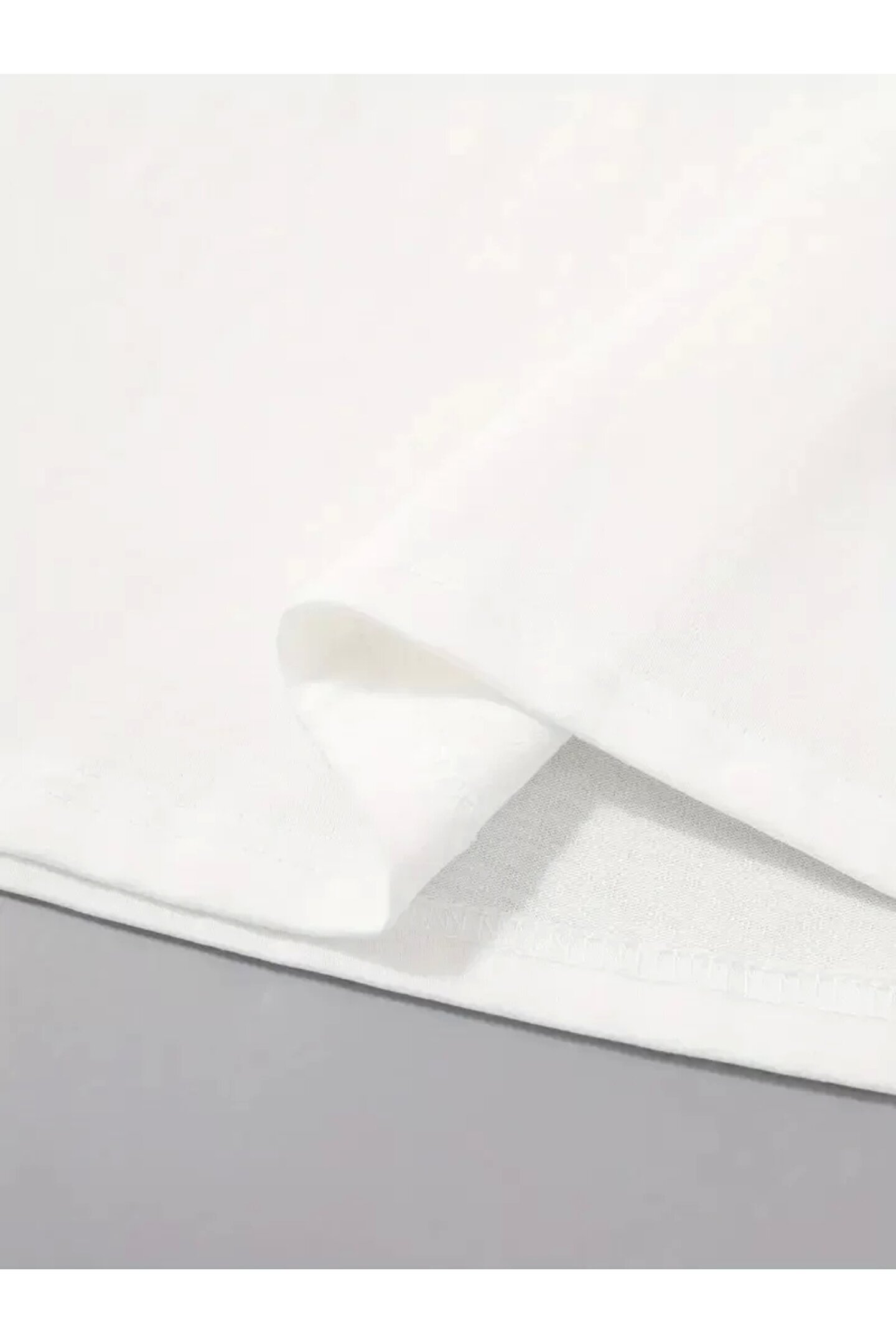 Serero Velmora Premium 201 Penye Compack Palmiye Baskılı Oversize Bisiklet Yaka Kısa Kol T-shirt - Beyaz