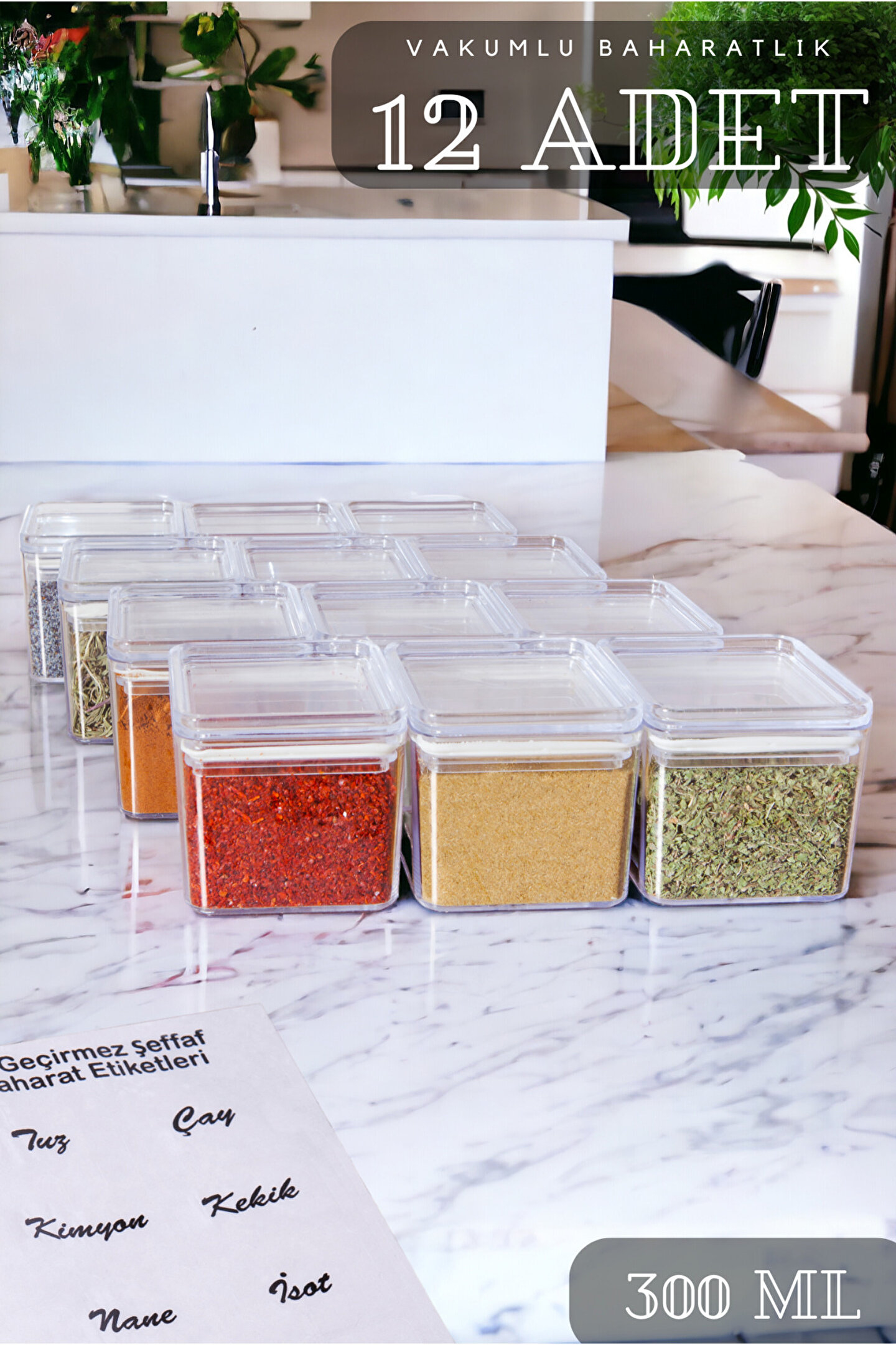 - Akrilik malzeme kullanımı sayesinde uzun ömürlü ve dayanıklı bir yapıya sahiptir; - Şeffaf etiketli tasarımı ile içerisindeki baharatların kolayca görülmesini ve erişilmesini sağlar; - 12 adet 250 ml kapasiteli saklama kabı, mutfakta ihtiyaç duyulan baharatları düzenli bir şekilde saklamak için idealdir; - Kolay temizlenebilir yüzeyi sayesinde hijyenik kullanım sunar ve mutfakta hijyenik bir ortam oluşturur;