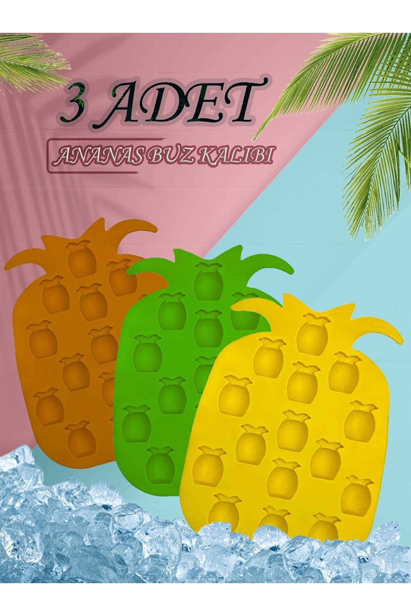 Buz ve çikolata kalıbı olarak kullanabileceğiniz silikon kalıplarımız 3 farklı renk olarak set halinde gönderilecektir. Renkler: mavi, sarı, kahverengi Materyal: silikon Gönderilecek adet: 3