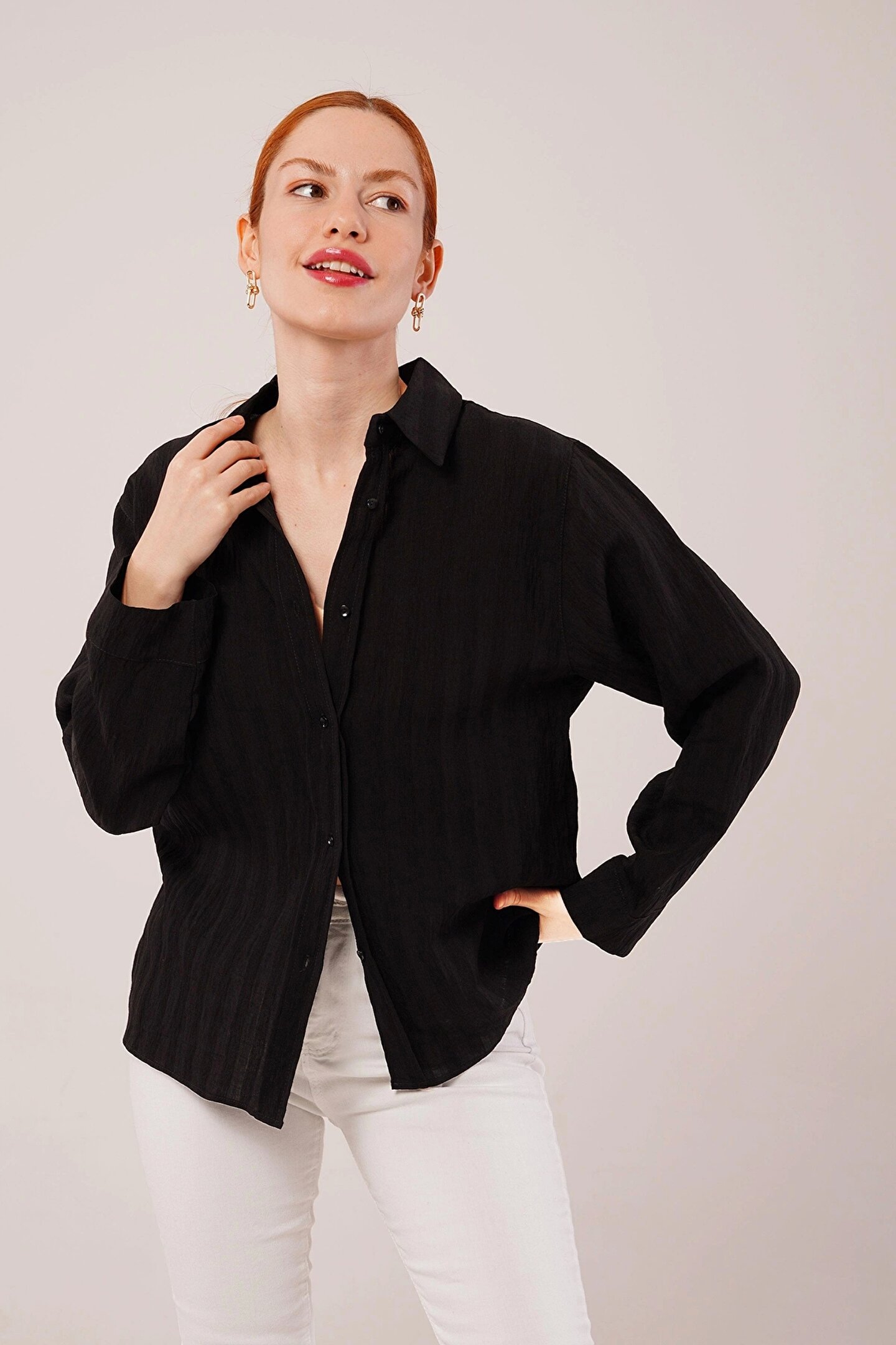 SEYAM Düğmeli Ve Çizgi Detaylı iyah Gömlek