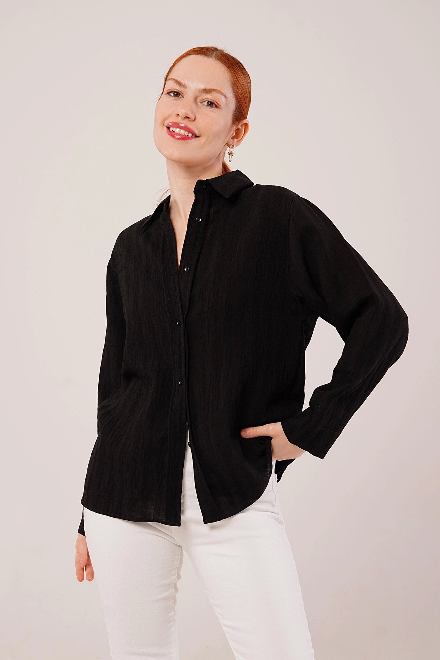 SEYAM Düğmeli Ve Çizgi Detaylı iyah Gömlek