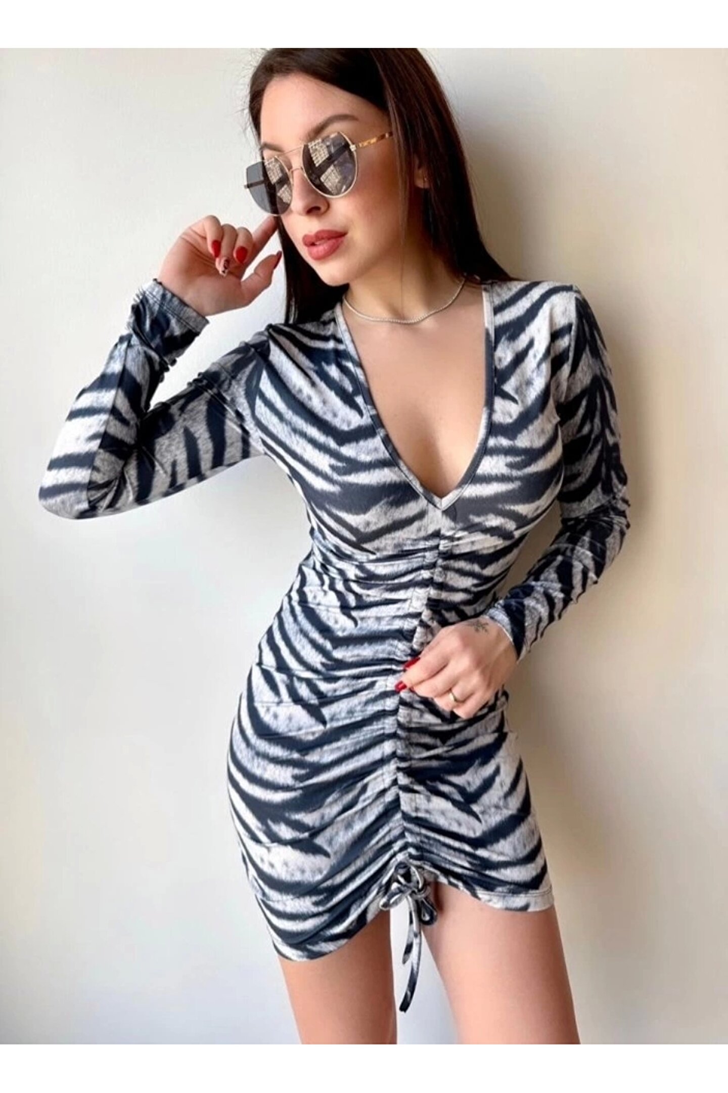 Kadın V Yaka önü Asansör Büzgü Detay Fırsat ürün Puantiyeli ini Elbise