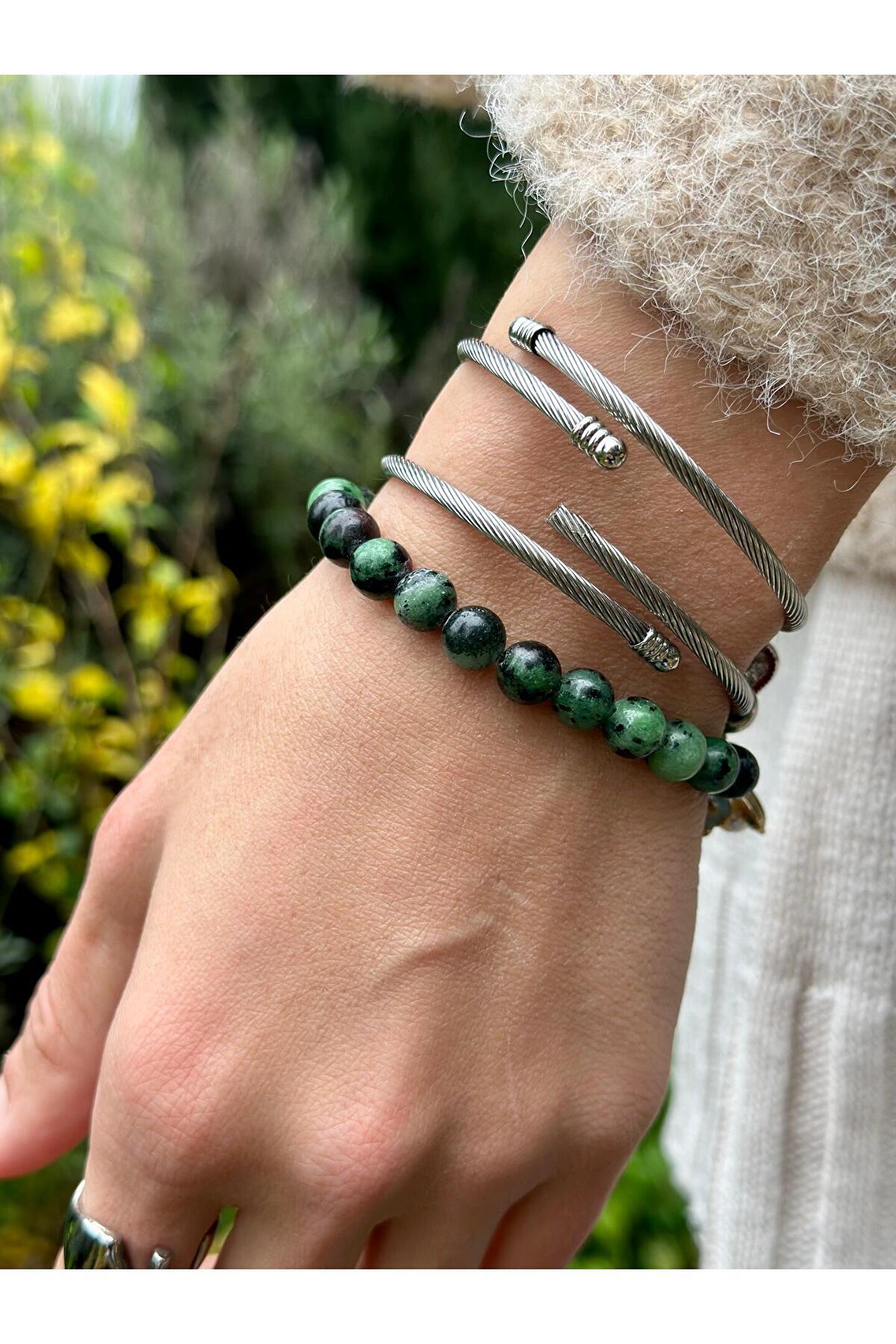 sezaiiletişim 8 Mm Anyolite Taşı Erkek Kadın Doğal Taş Bileklik (RUBY ZEOSİTE) A Kalite