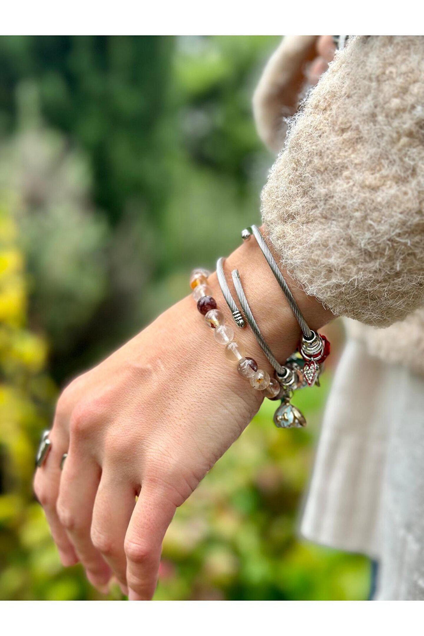 sezaiiletişim 8 Mm Hematoit Kuvars Taşı Erkek Kadın Doğal Taş Bileklik A Kalite