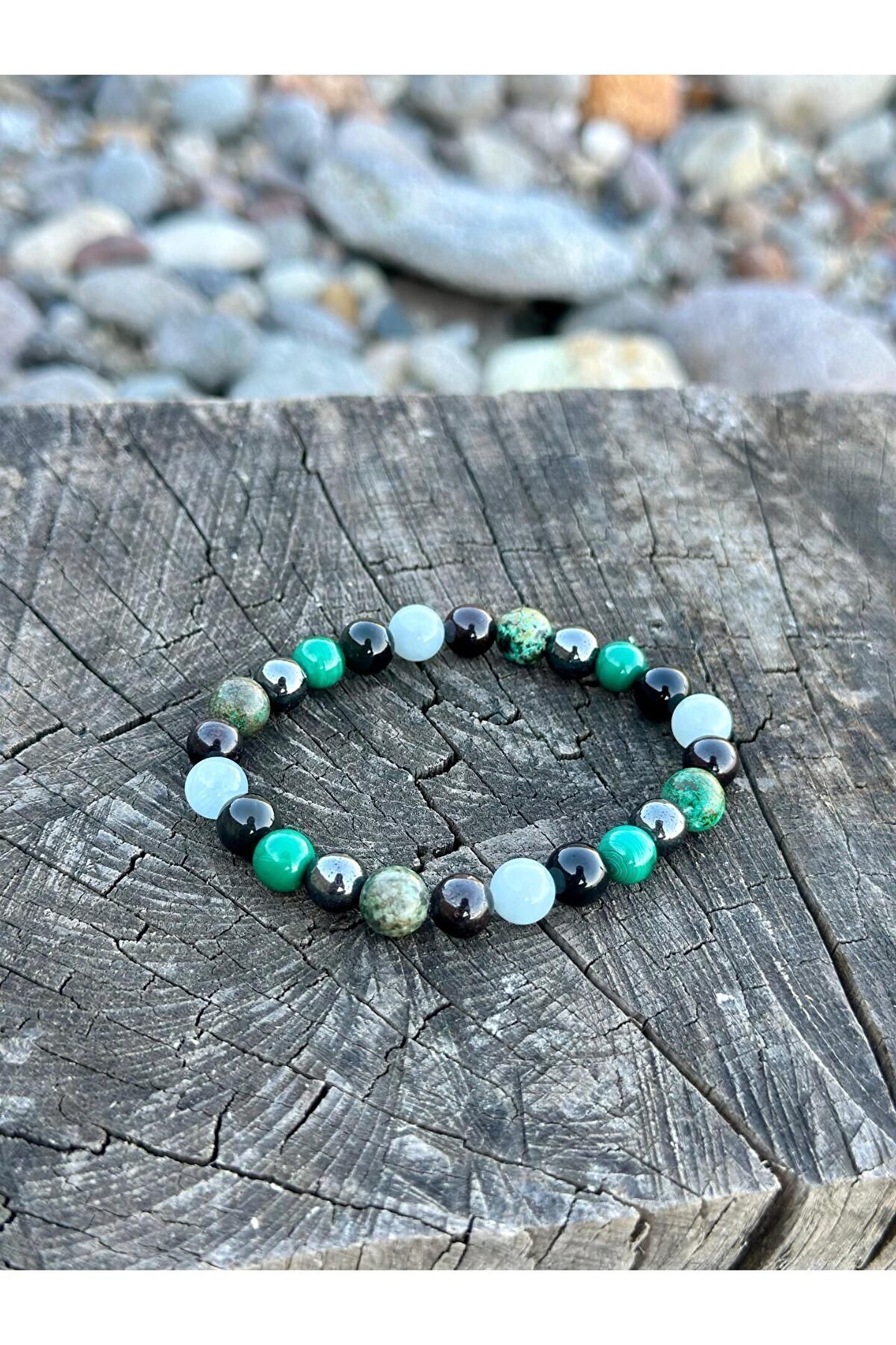 8mm Akrep Burcu doğaltaş bileklik, Malakit-Akuamarin-Granat(Lal)-Obsidyen-A.Turkuaz(Firuze)-Hematit