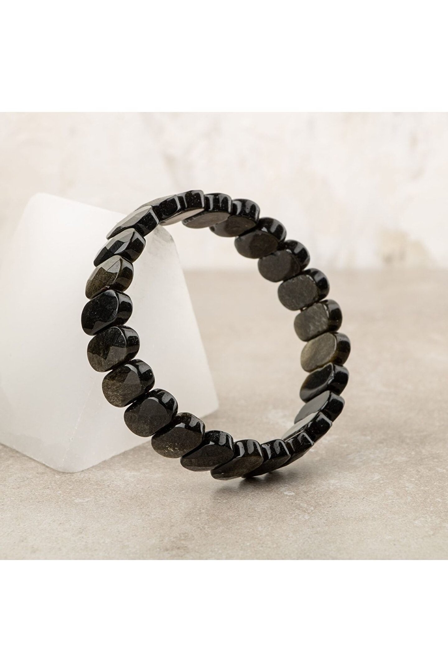 Doğal taşların büyüleyici güzelliğini parmak uçlarınıza taşıyan bu bileklik, geniş kesim obsidyen taşıyla öne çıkar.; Sertifikalı obsidyen taşı, uzun süreli kullanımda dahi renk değiştirmez ve dayanıklı yapısıyla dikkat çeker.; Doğal taşların şık tasarımlarıyla süslenmiş bu bileklik, hem günlük kullanım hem de özel günlerinizde tarzınızı tamamlayacak zarif bir aksesuardır.; Her bir bileklik, el işçiliğiyle üretilmiş olup, benzersiz dokusuyla kişisel tarzınıza özgünlük katar.; Sağlam yapısı sayesinde uzun süreli kullanım vaad eden bu bileklik, doğal taş severlerin vazgeçilmezi olacak.;