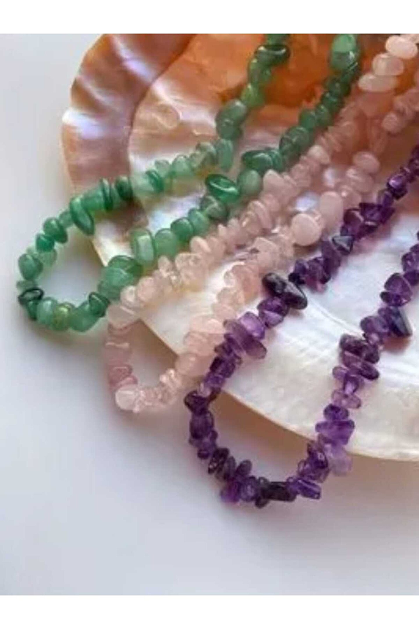 Doğal taş kullanımı sayesinde her kolye seti, benzersiz ve otantik bir görünüm sunar; Ametist, Aventurin ve Pembe Kuvars gibi değerli taşların birleşimiyle zenginleştirilmiş bu kolye seti, şıklığınızı tamamlar; Üç farklı renk seçeneğiyle her zevke hitap eden bu kolye seti, günlük kullanım için idealdir; Doğal taş materyaliyle hem dayanıklılık hem de estetik bir parlaklık sağlar;