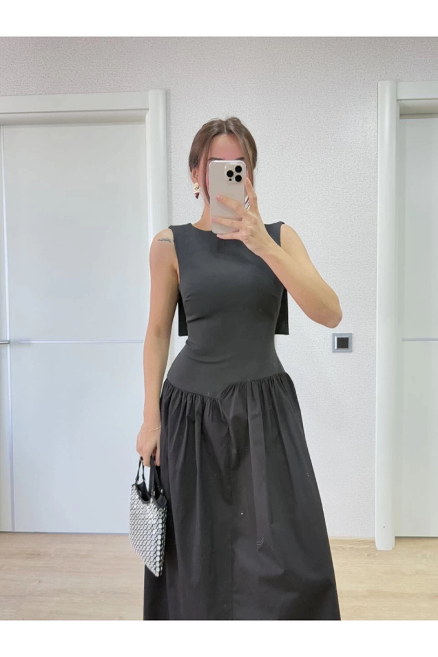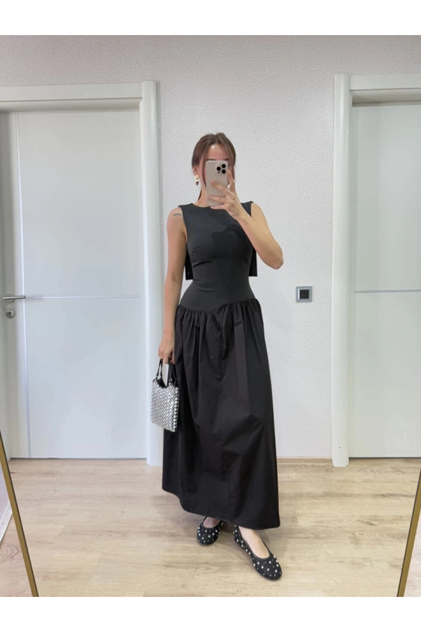 SGM BUTİK Arkası Kanatlı Uzun Elbise- Siyah