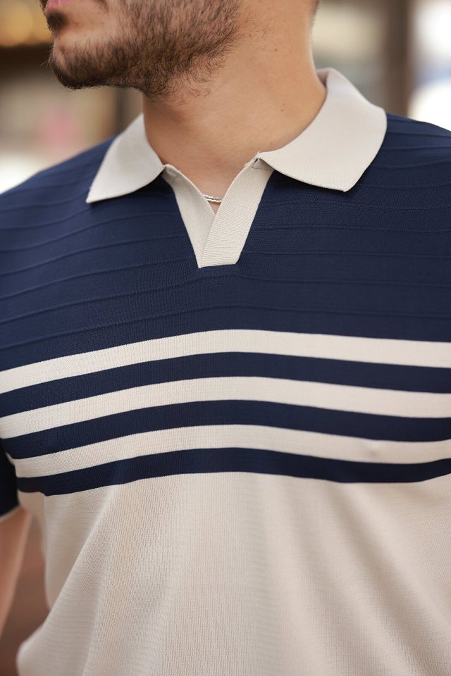 SGM BUTİK EQURİ Erkek çizgi Desenli Yakalı Kısa Kollu T-shirt