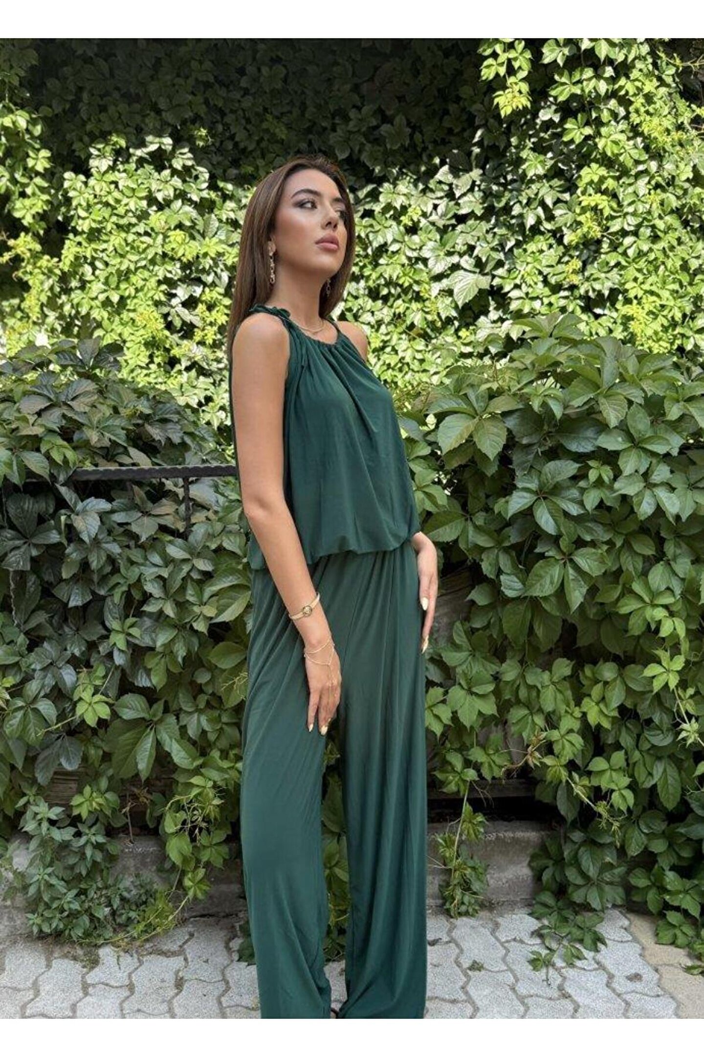 SGM BUTİK Kadın Omuz Askılı Döküm Detay Salaş Sandy Kumaş Tulum
