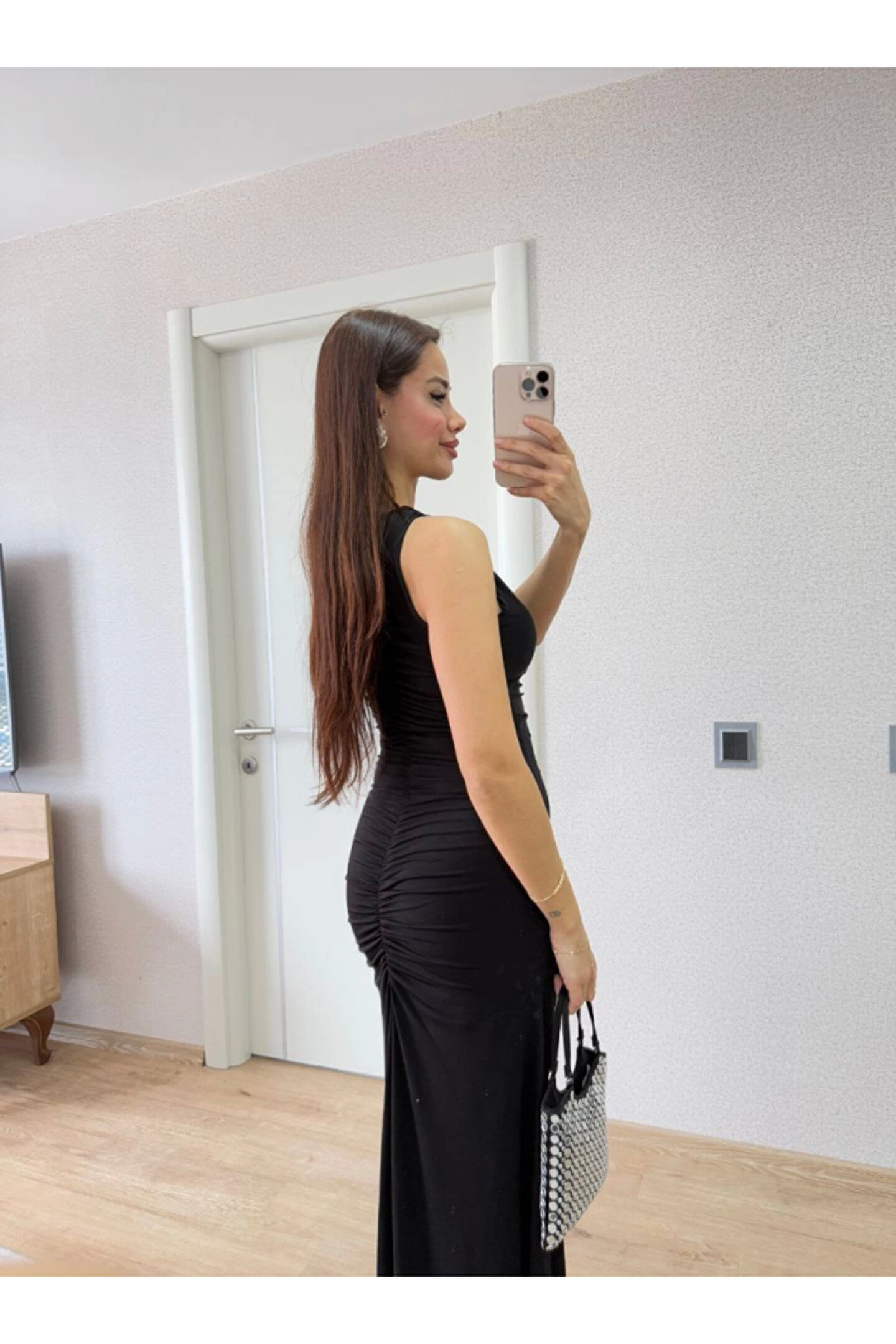 SGM BUTİK Kolsuz Büzgülü Uzun Elbise - Siyah