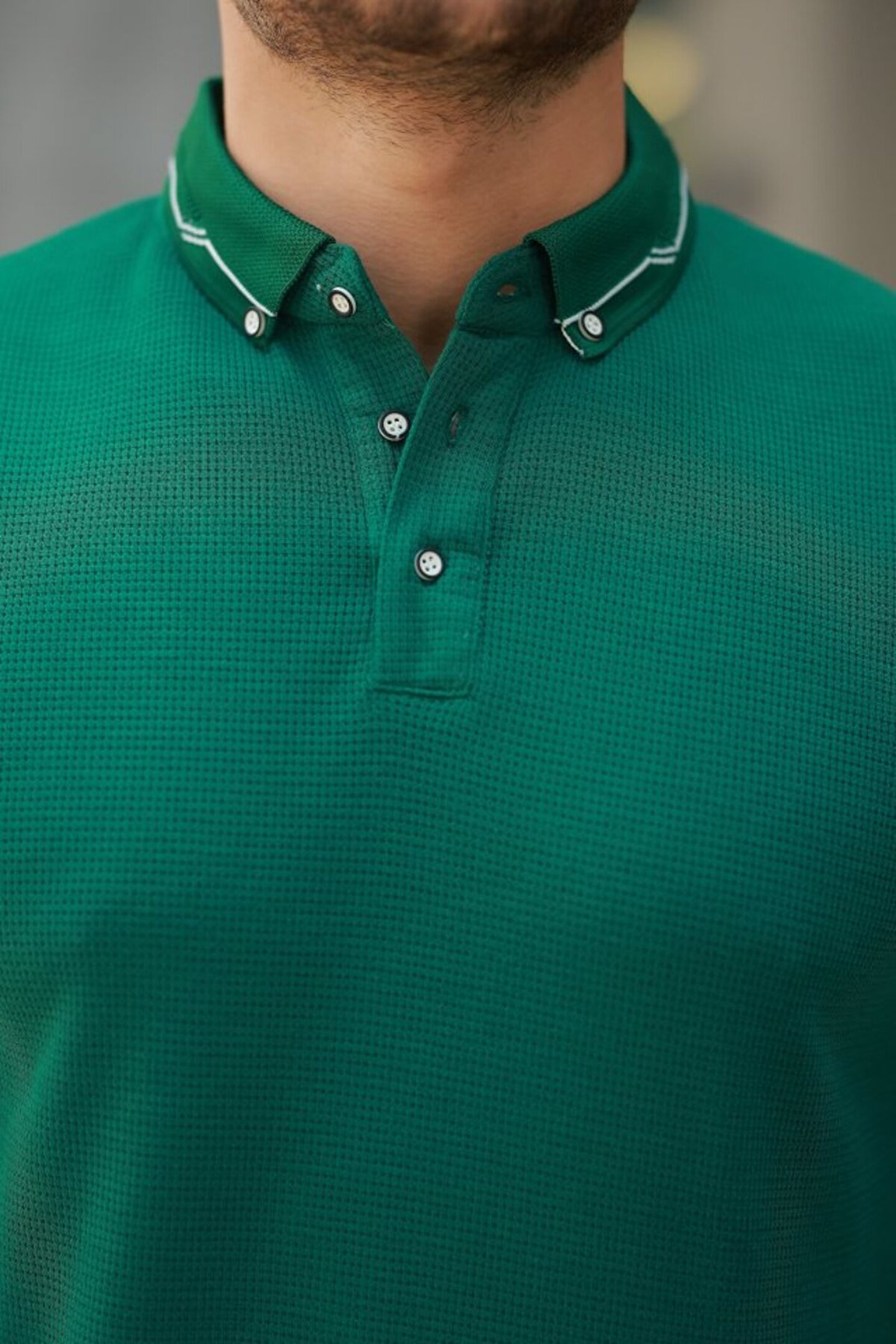 Erkek Düğmeli Yaka Waffle Kumaş Kısa Kollu Tişört