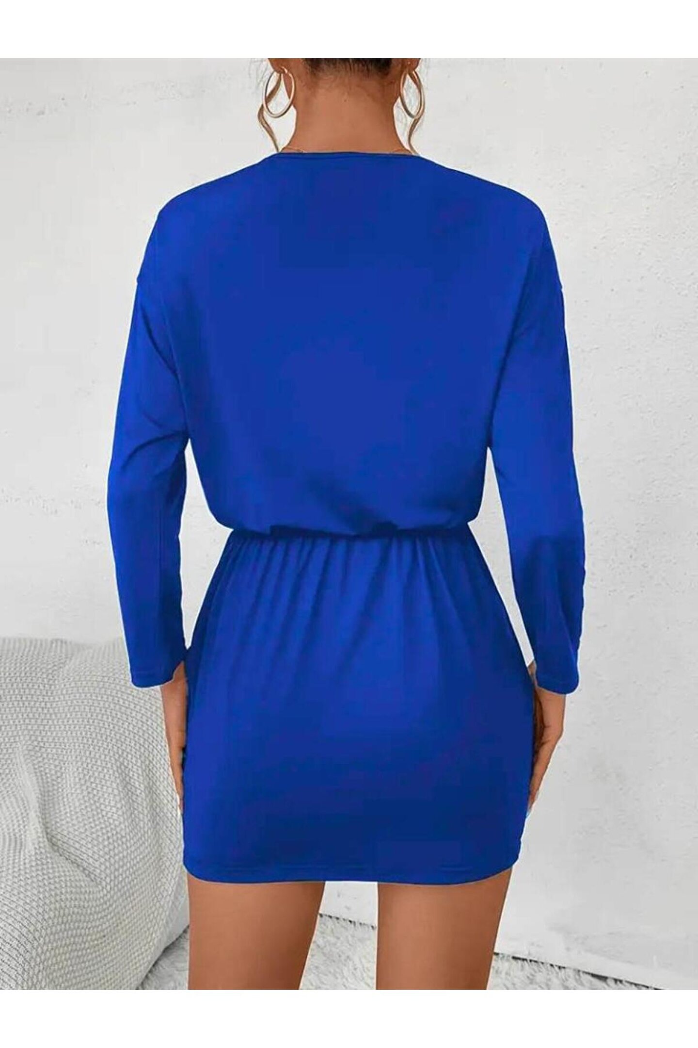 shopivastore Kadın Uzun Kollu önden Fermuarlı Beli Bağcıklı Kısa Viskon Iki Iplik Elbise