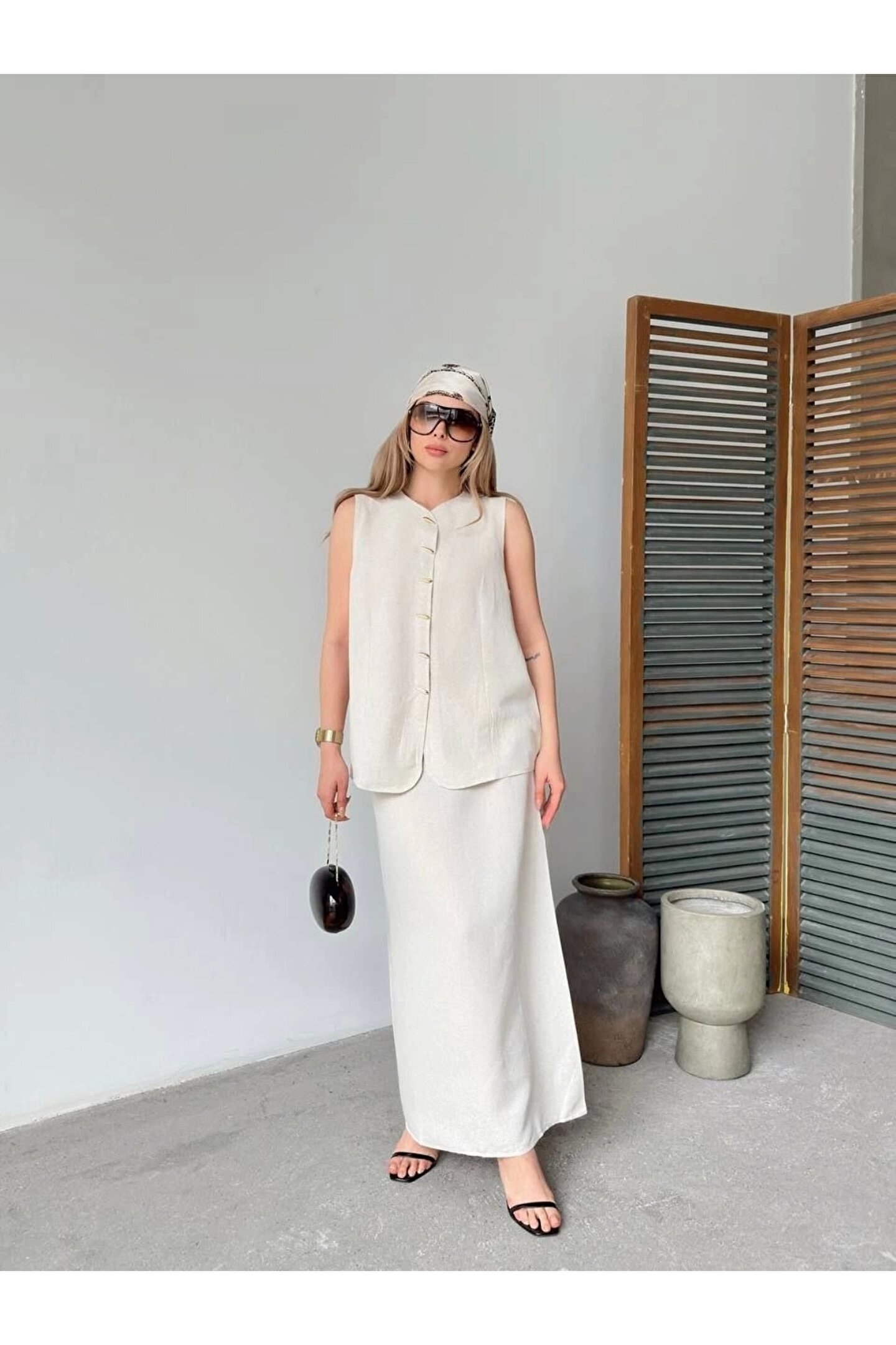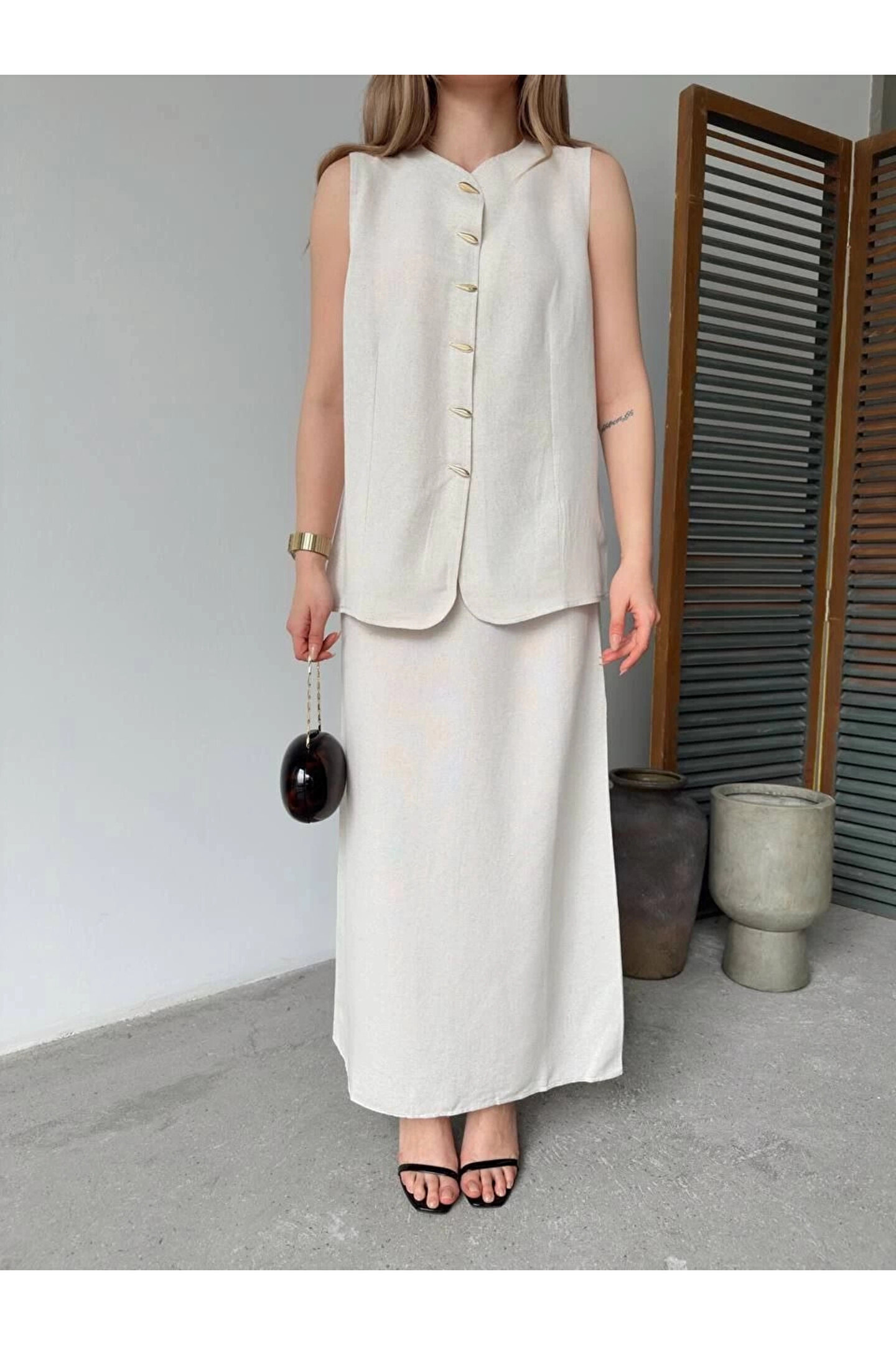 Keten Kolsuz Hırka Etek Ikili Takım- Beyaz Siparişleriniz özenle bir şekilde hazırlanılıp 24 saat içerisinde kargoya verilmektedir.; kargo firması olarak ile çalışmaktayız.; siparişinizi oluşturduktan sonra 1-4 gün içerisinde ürünleriniz elinize ulaşmış olacaktır.; Özel ve sıradışı tasarım ürünlerimiz, yaşamınıza benzersiz bir çekicilik ve tarz katacak.; Günlük hayatta giyim üzeri vücut aksesuarı gibi kullanabileceğiniz özel parçalar sunuyoruz.; Bu ürünlerle kendinizi özgürce ifade edebilir, kişisel tarzınızı ön plana çıkarabilirsiniz.; Her biri özenle seçilmiş, yüksek kaliteli malzemelerle üretilmiş olan tasarımlarımız, özel yaşamınızda da dikkat çekici detaylar sunar.; Göz alıcı ve çekici olmalarının yanı sıra, konfor ve kullanışlılık da sağlamak için özen gösteriyoruz.; Gündelik hayatta şıklığınızı tamamlamanın yanı sıra özel anlarınızda da kendinizi özel hissetmenizi sağlayacak ürünlerimiz, sizin tarzınızı ve zevkinizi yansıtmak için özel olarak tasarlanmıştır.; Asmirayı keşfedin ve tarzınızı yansıtan özel parçalarla kendinizi ifade etmenin keyfini çıkarın!